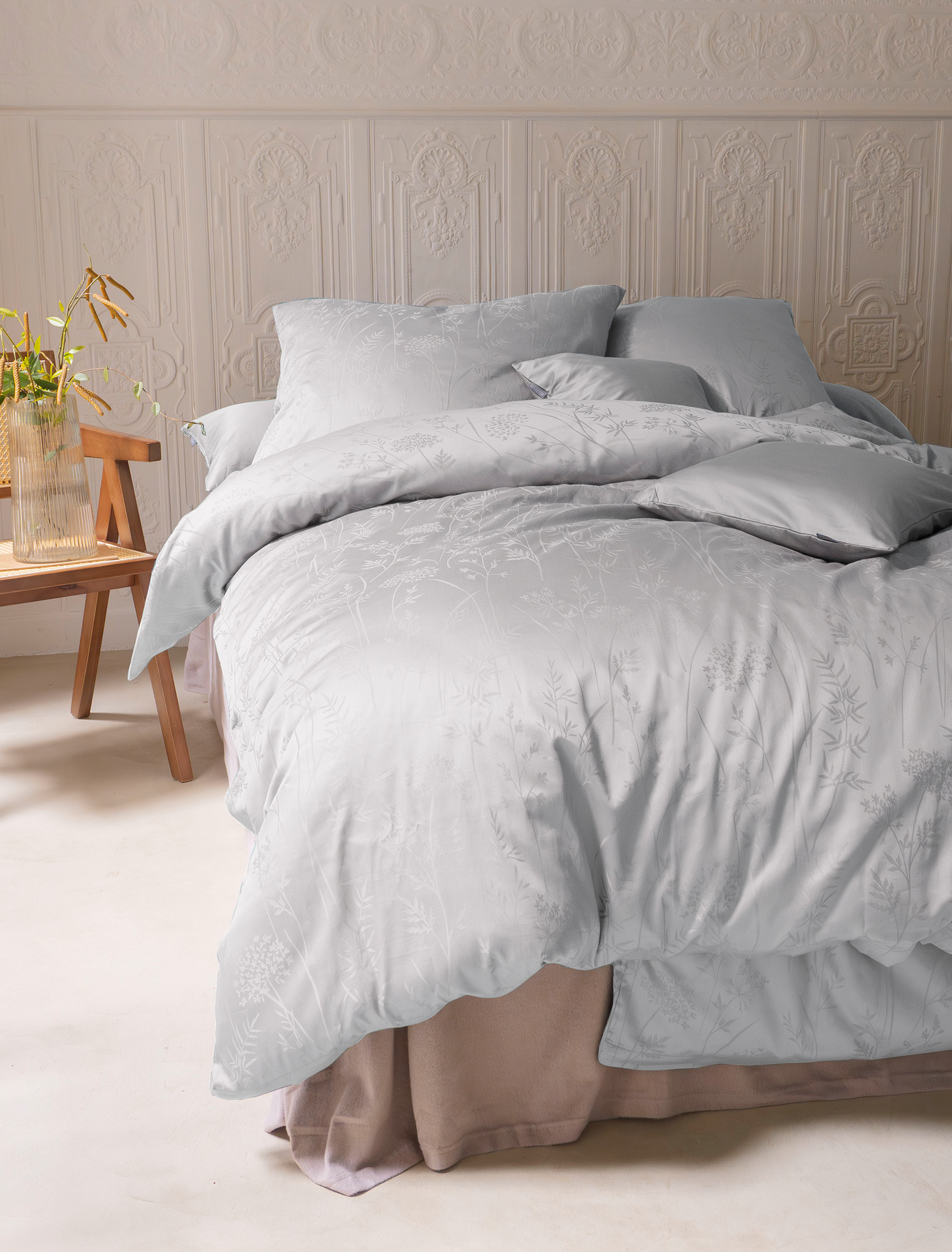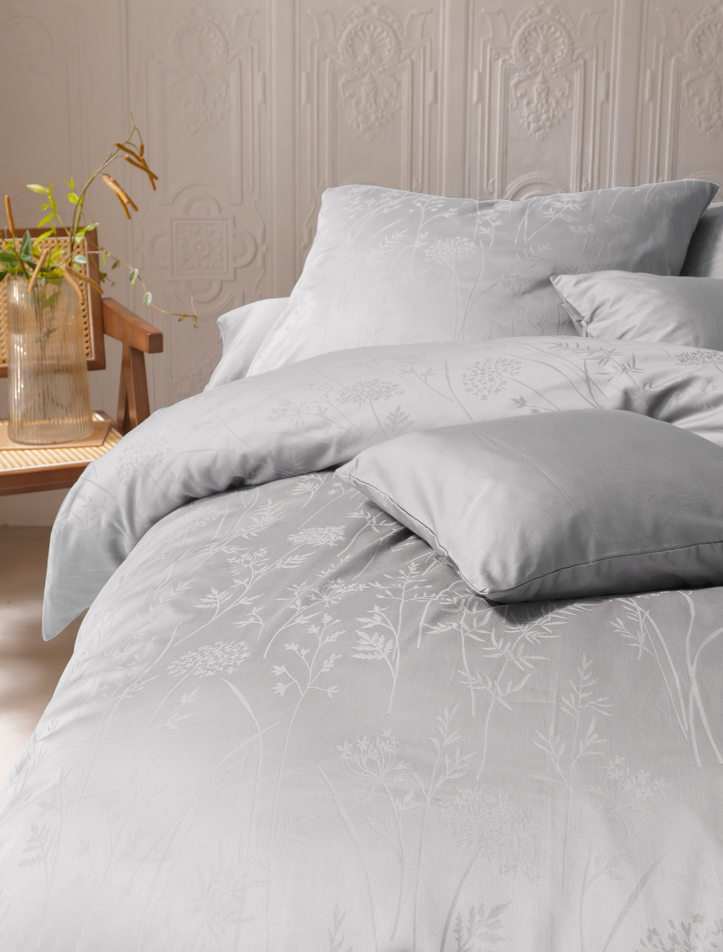 Janine Satin Bettwäsche Moments Silber-Grau 135x200cm