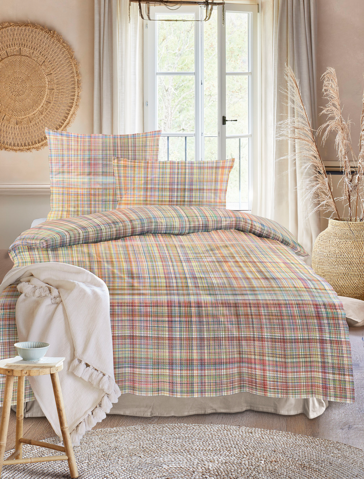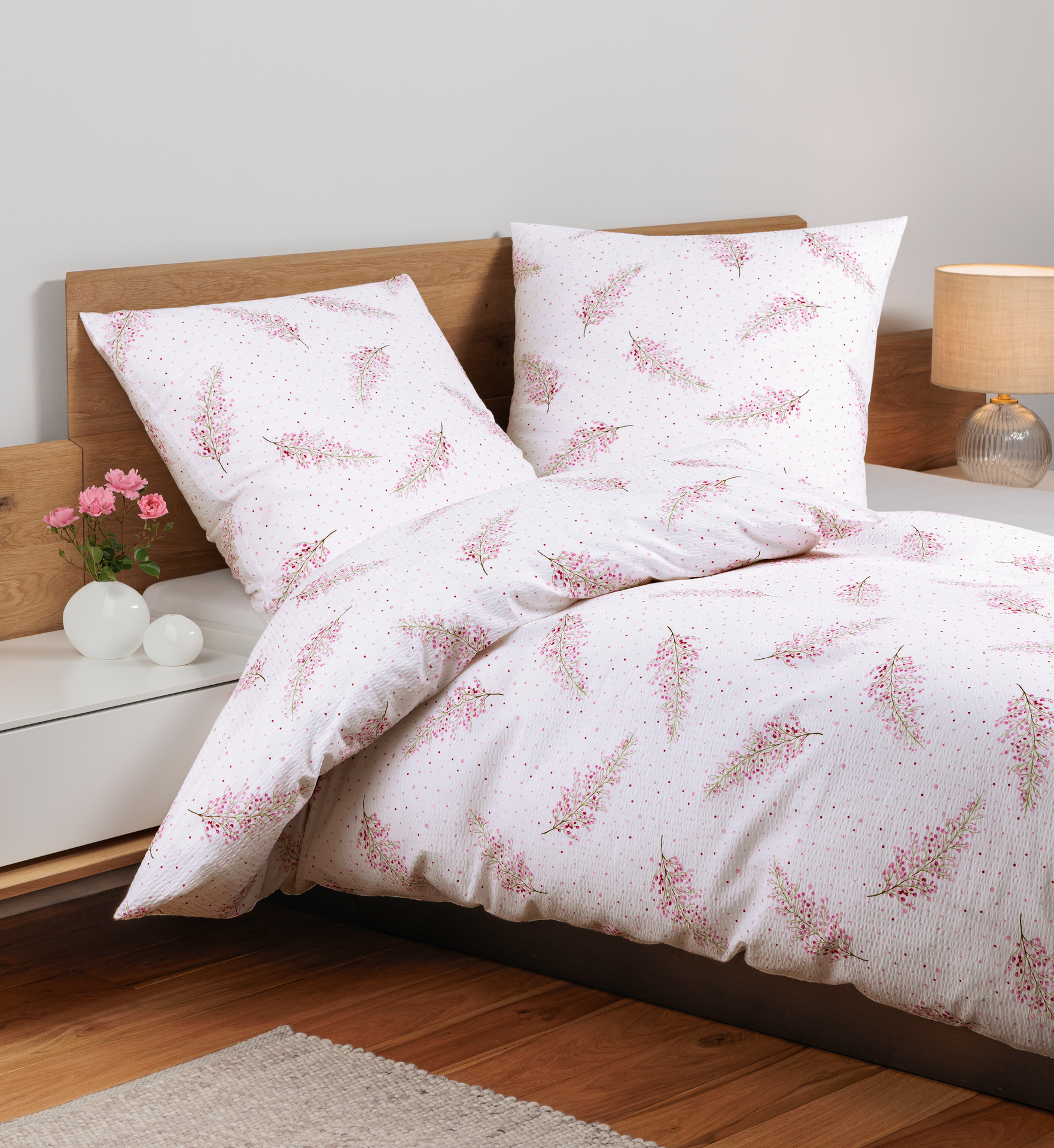 Janine Seersucker Bettwäsche Tango Beere-Natur 155x220cm