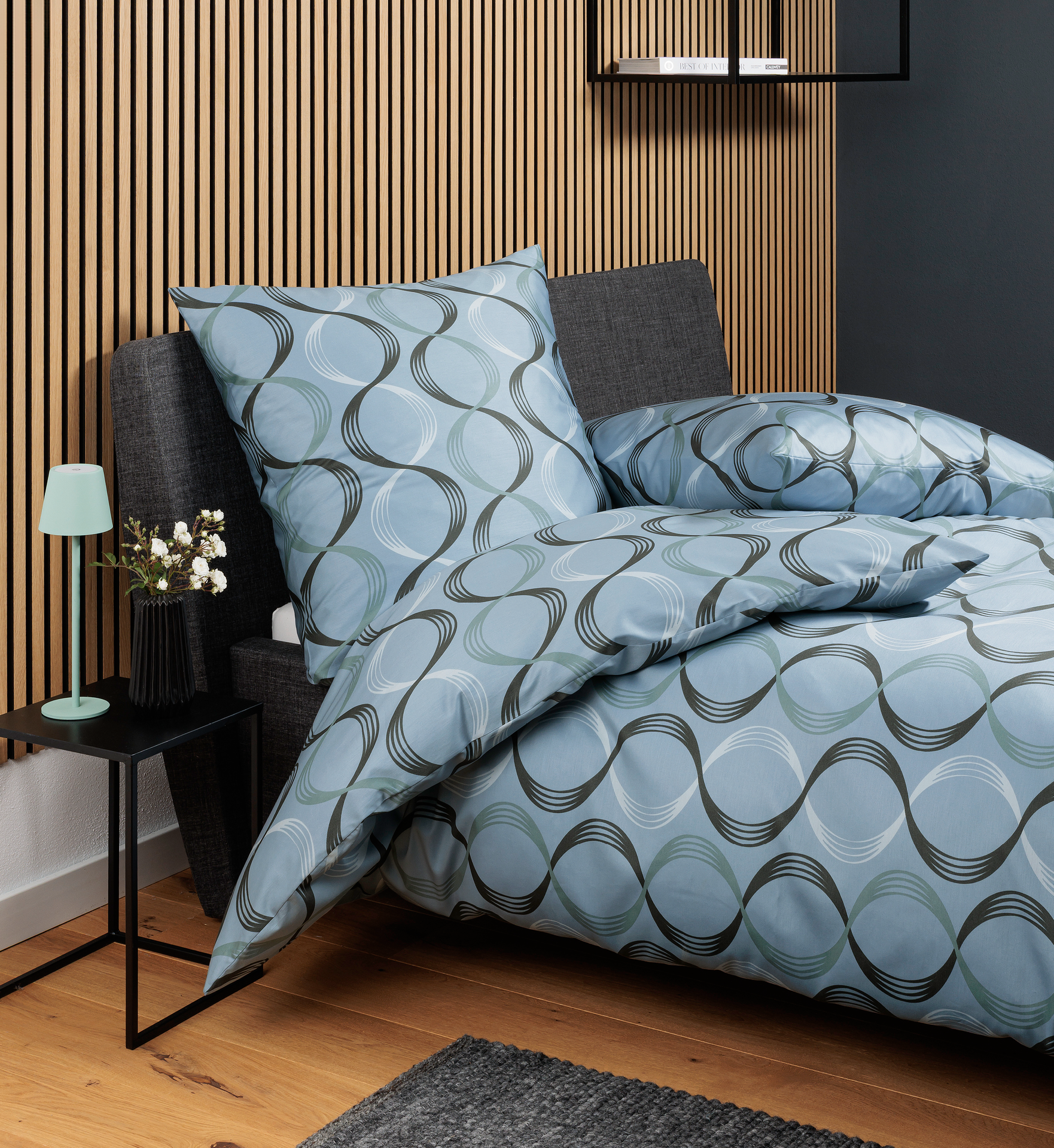 Janine Satin Bettwäsche Moments Silberblau-Grün 135x200cm