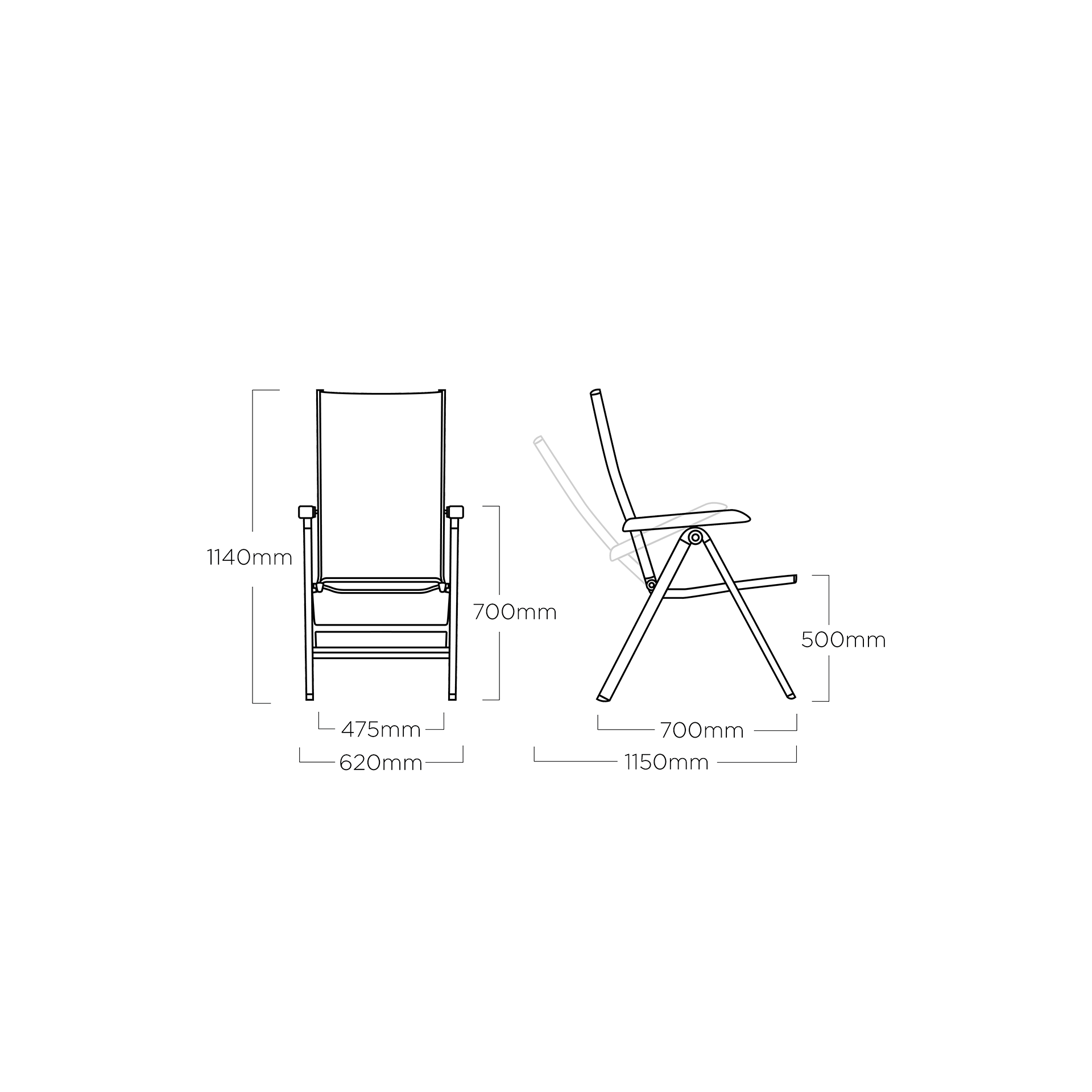 Stern Stern Klappsessel Cardiff Armlehne Anthrazit Bezug Silbergrau Gestell Edelstahl