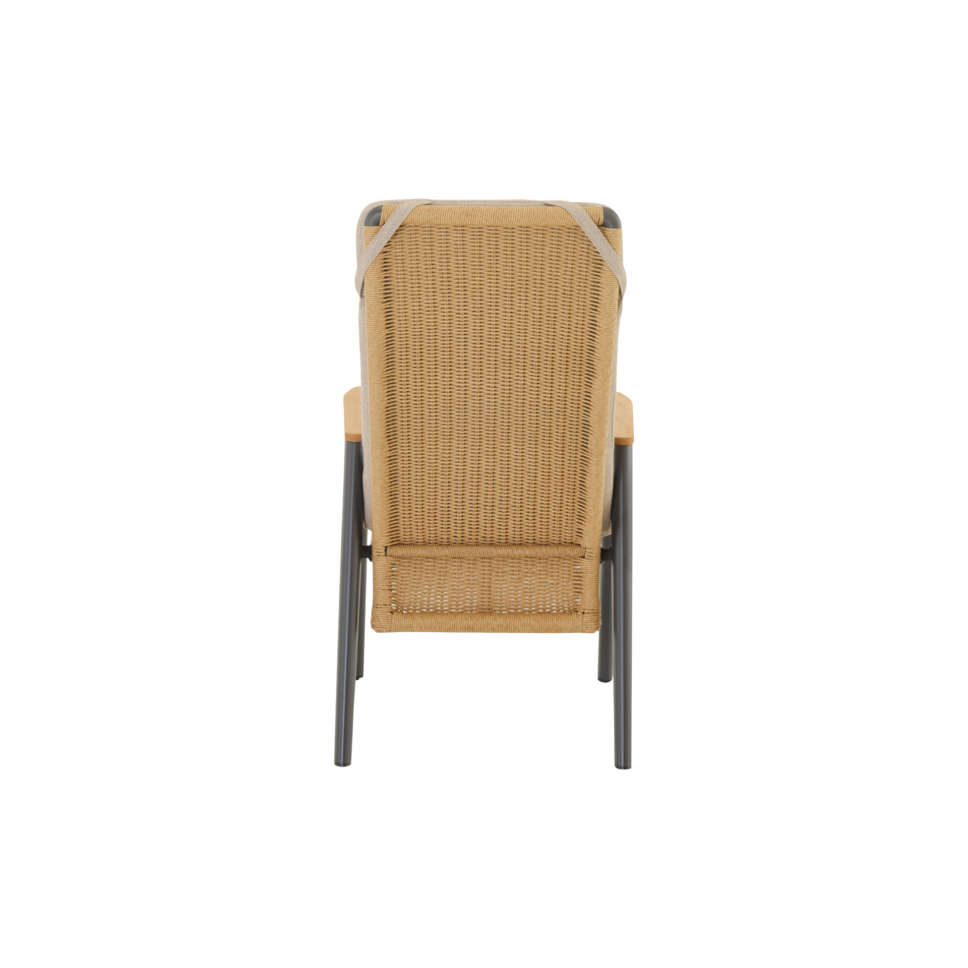 Stern Stern Stapelsessel New Top Armlehne Teak Gestell Schwarz Matt Bezug Leinen Grau