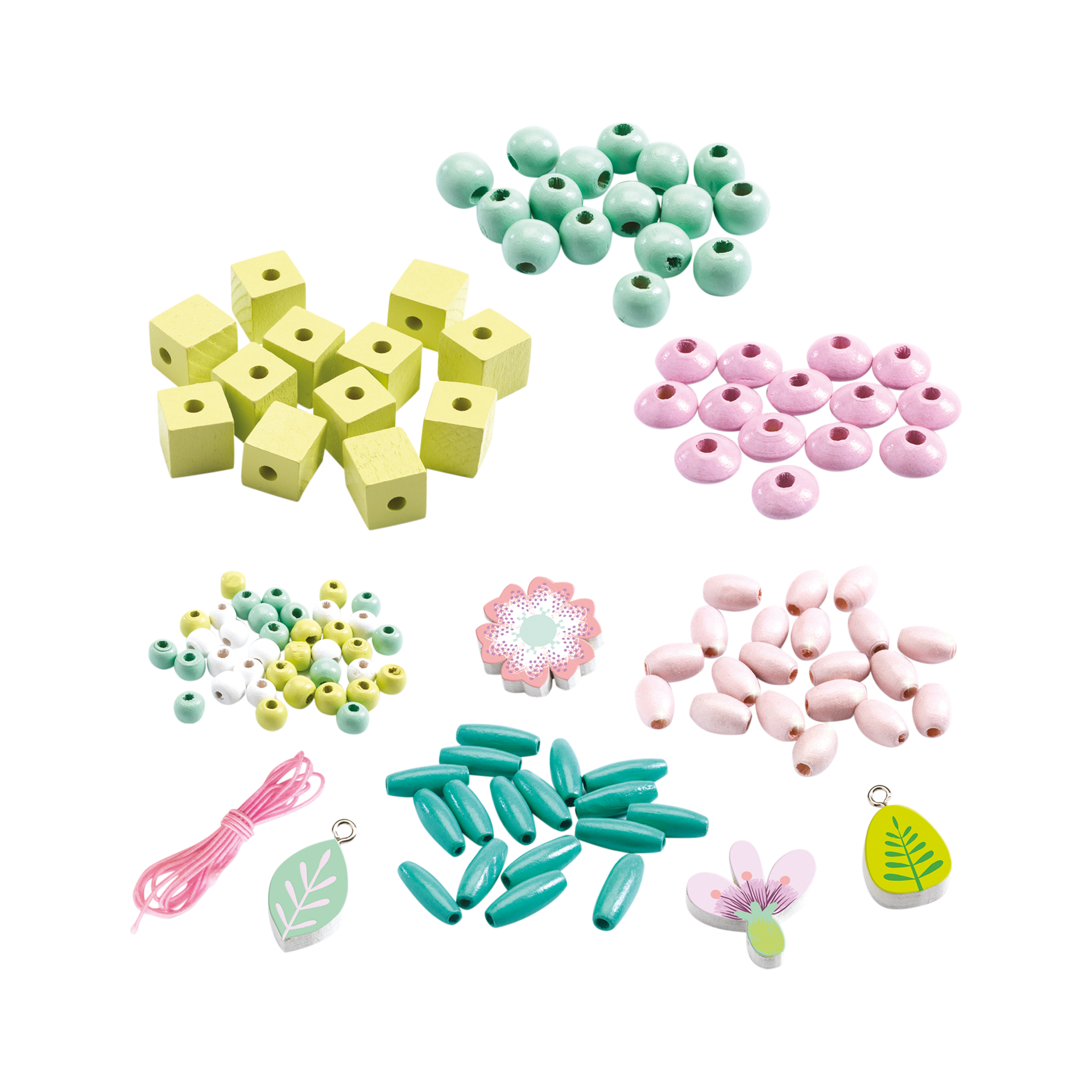 Bastelset Holzperlen Blätter und Blumen Mehrfarbig