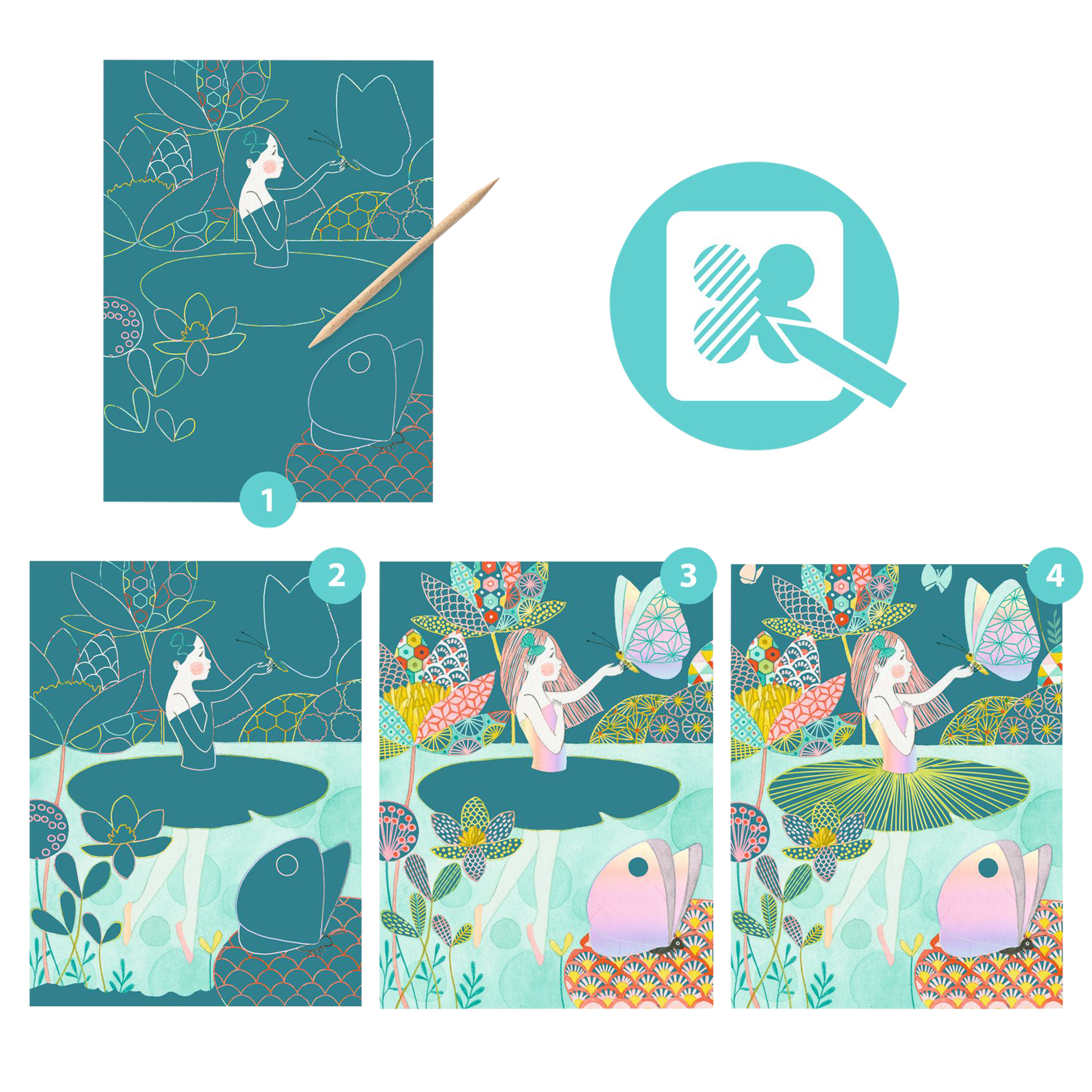 Kratzbilder Der Teich Mehrfarbig