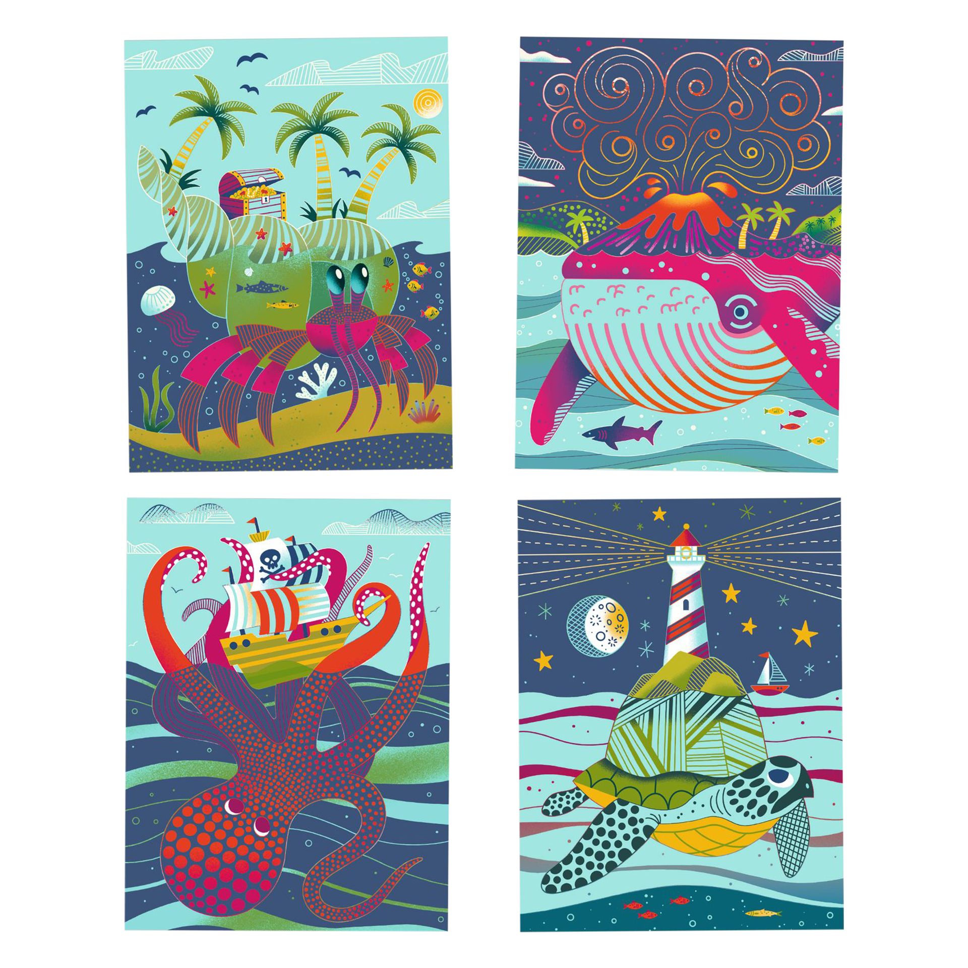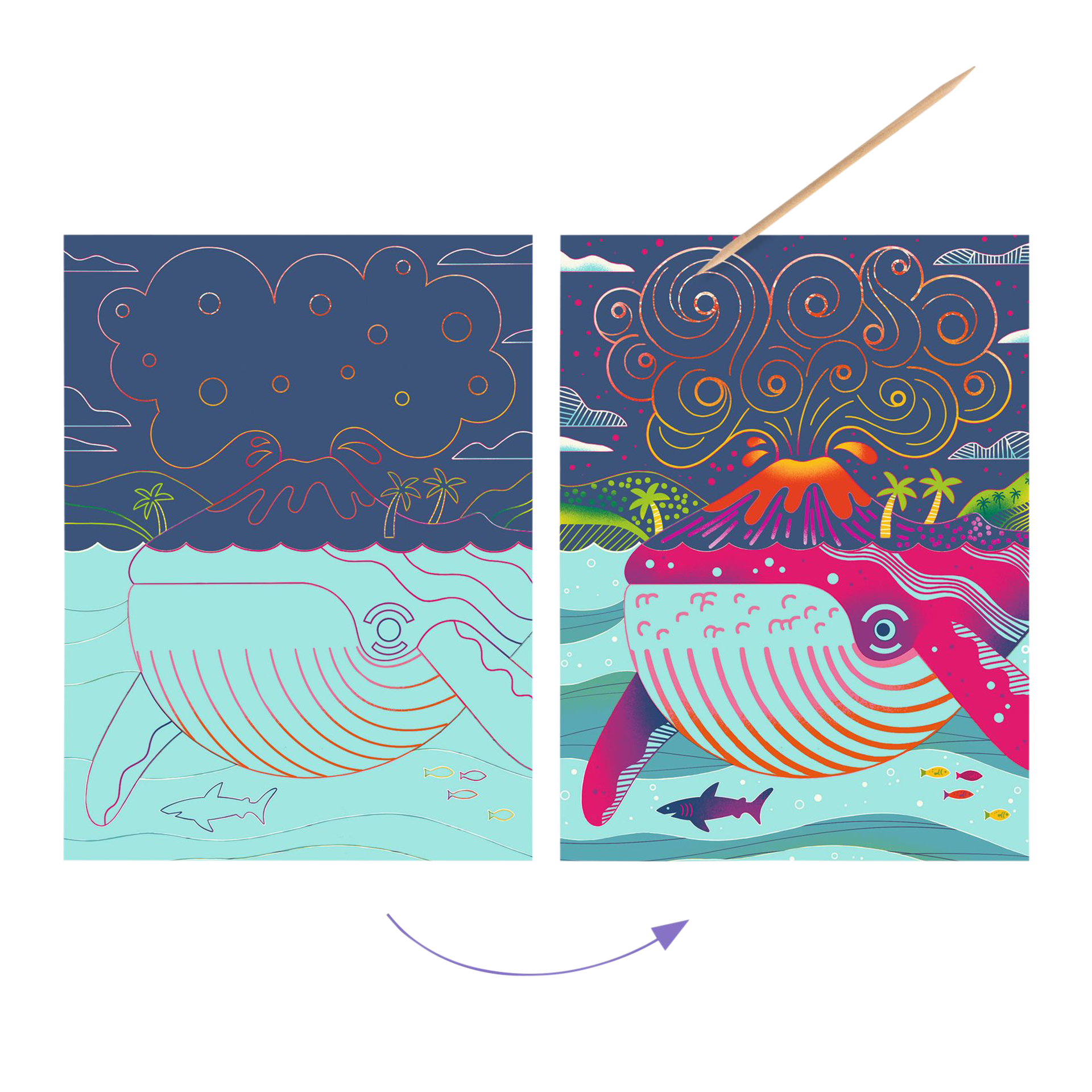Kratzbilder Oben und unten Blau-Bunt