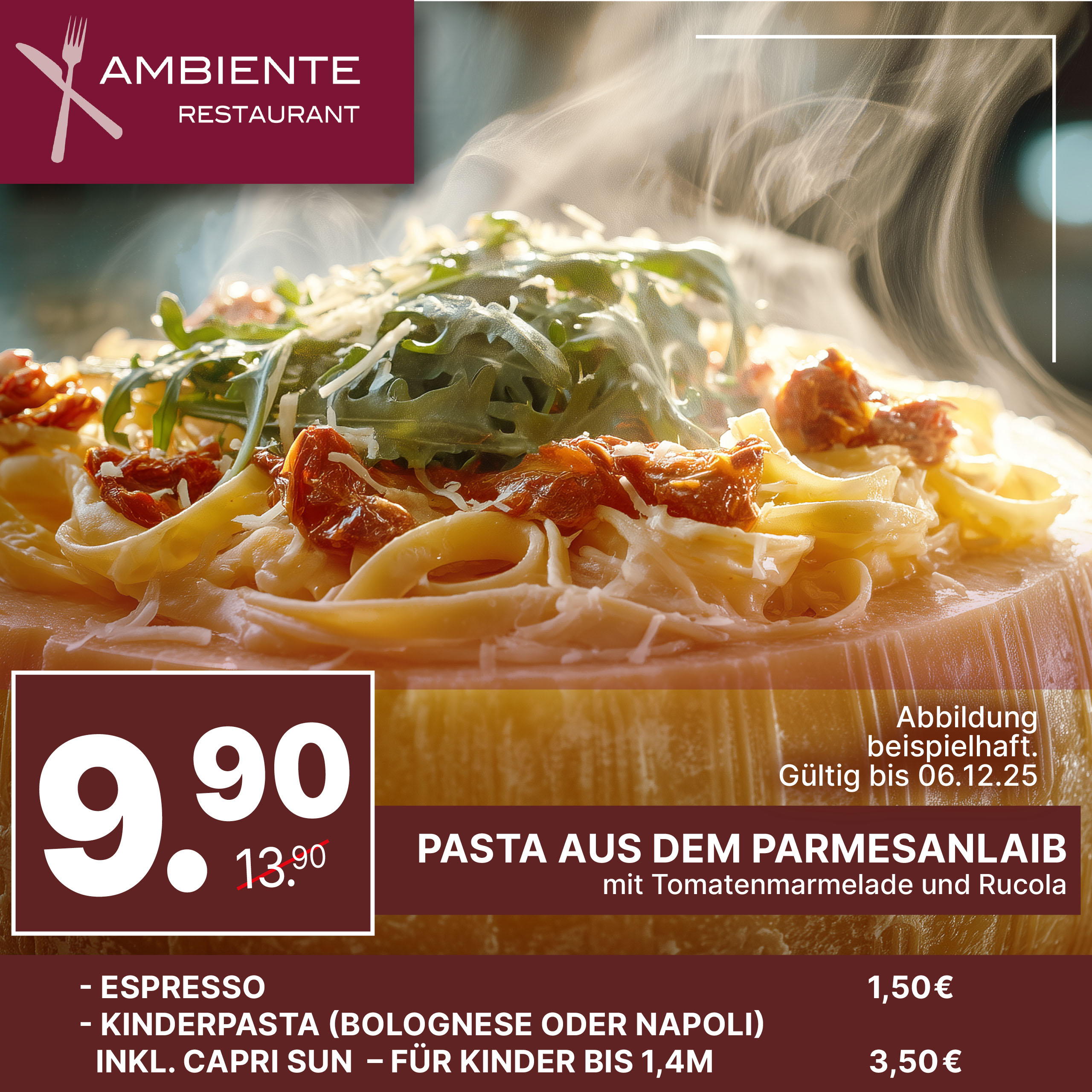 Während unserer Italienischen Wochen bieten wir für unsere Gäste besondere Angebote an. Unser Restaurant hat während der Italienischen Wochen zu folgenden Öffnungszeiten geöffnet: