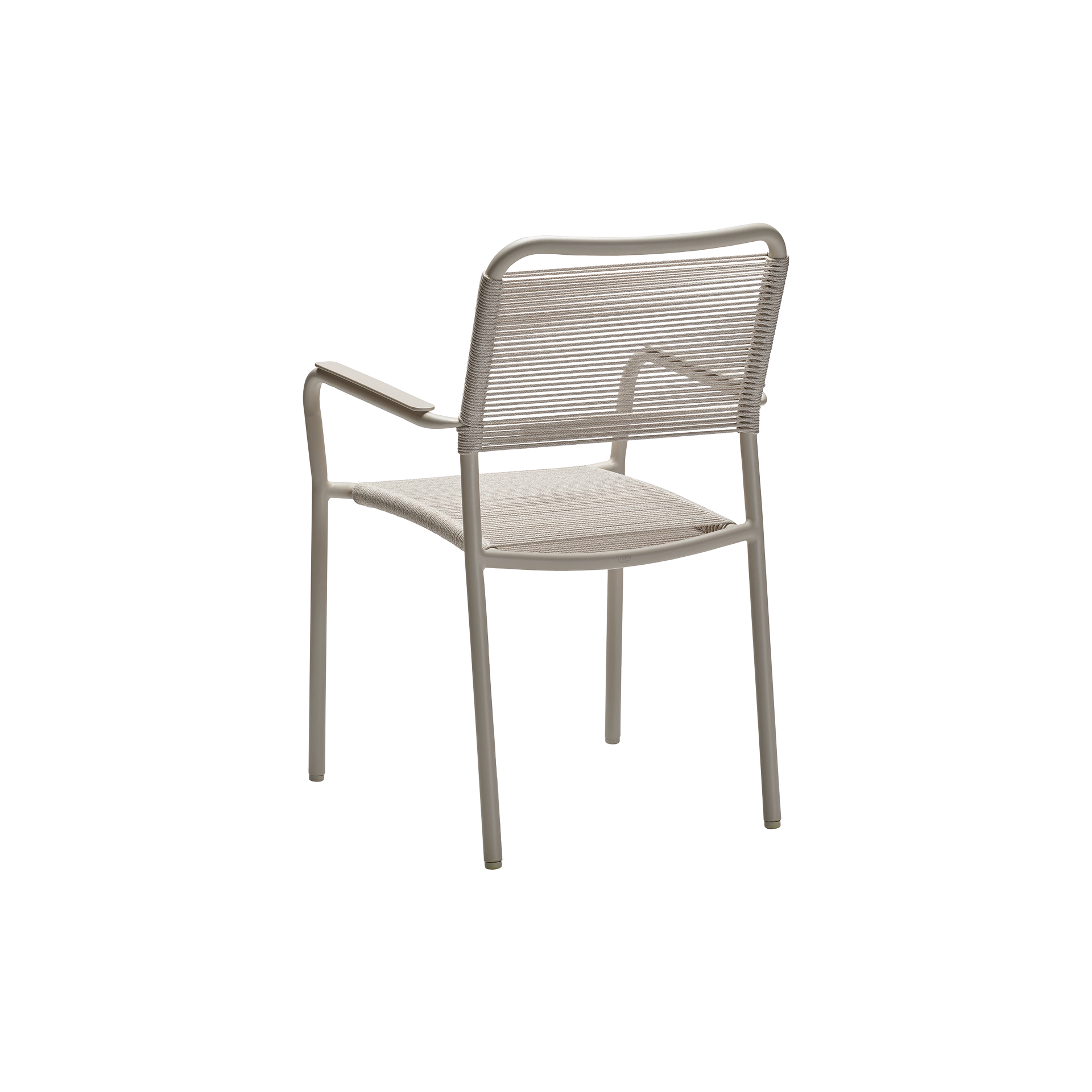 Stern Stern Stapelsessel New Top Armlehne Teak Gestell Schwarz Matt Bezug Leinen Grau
