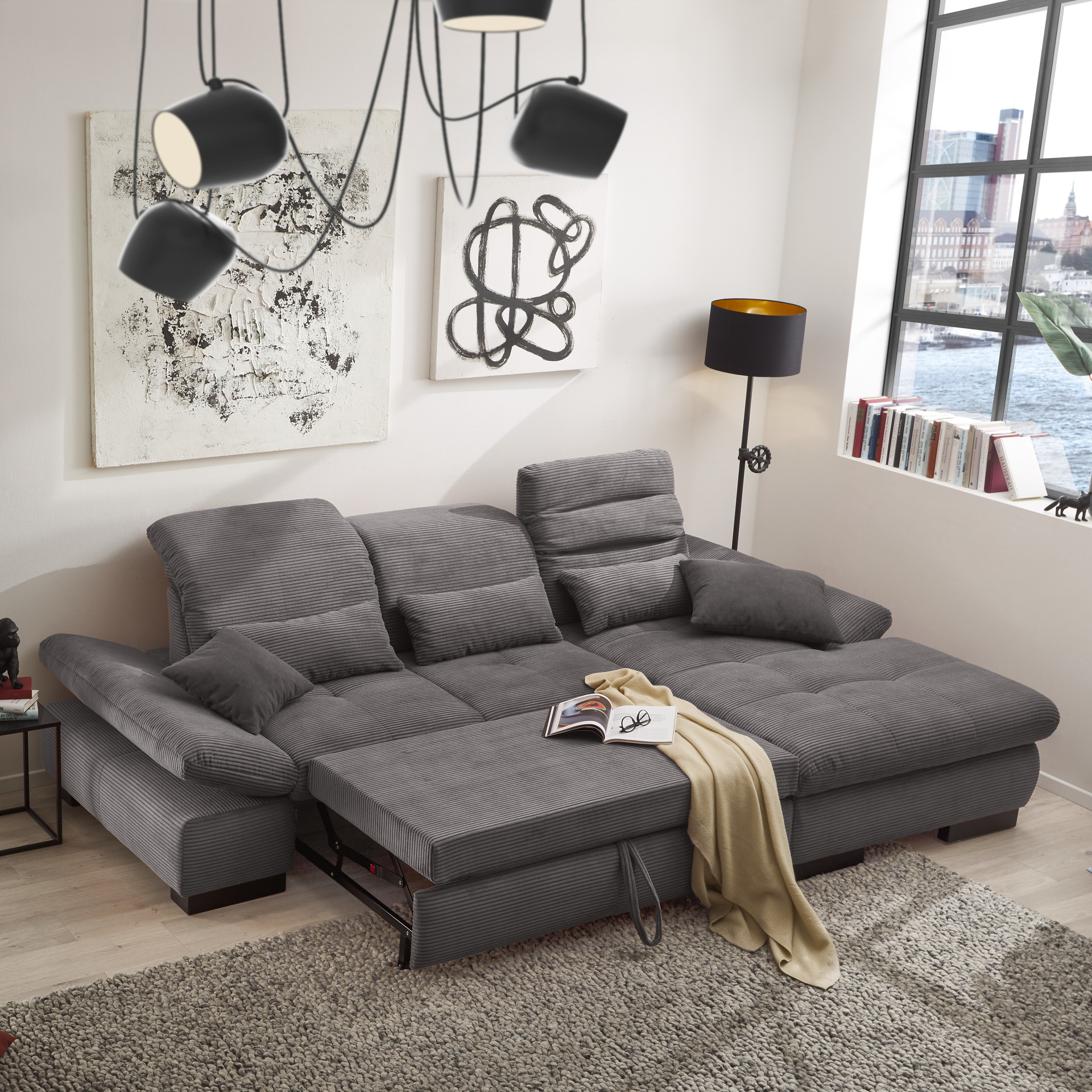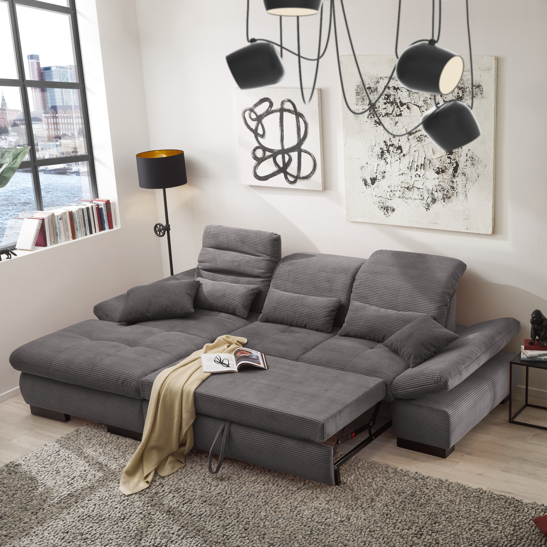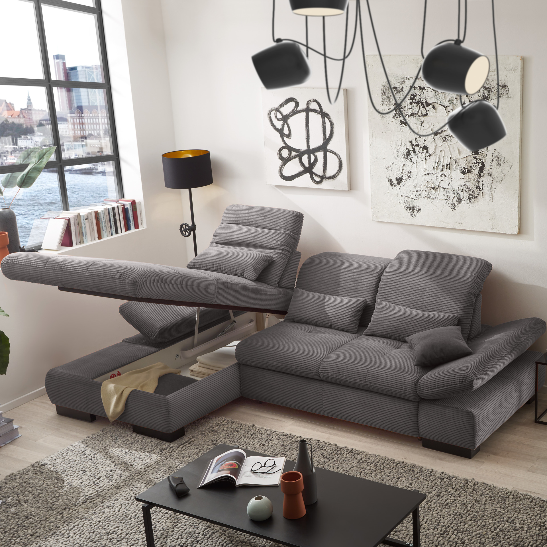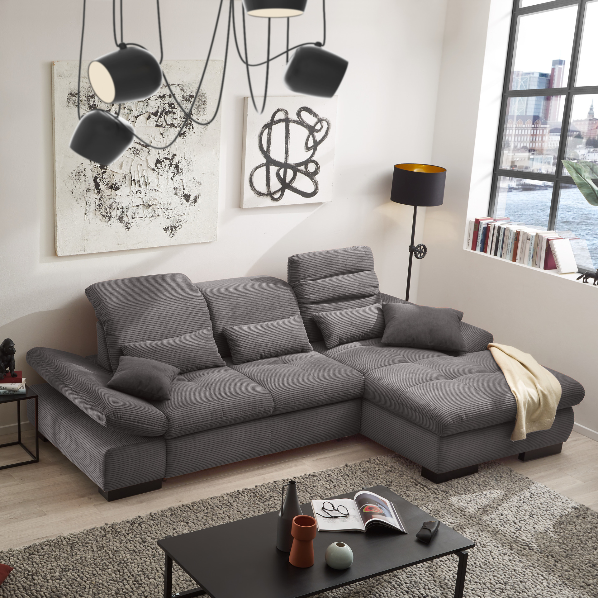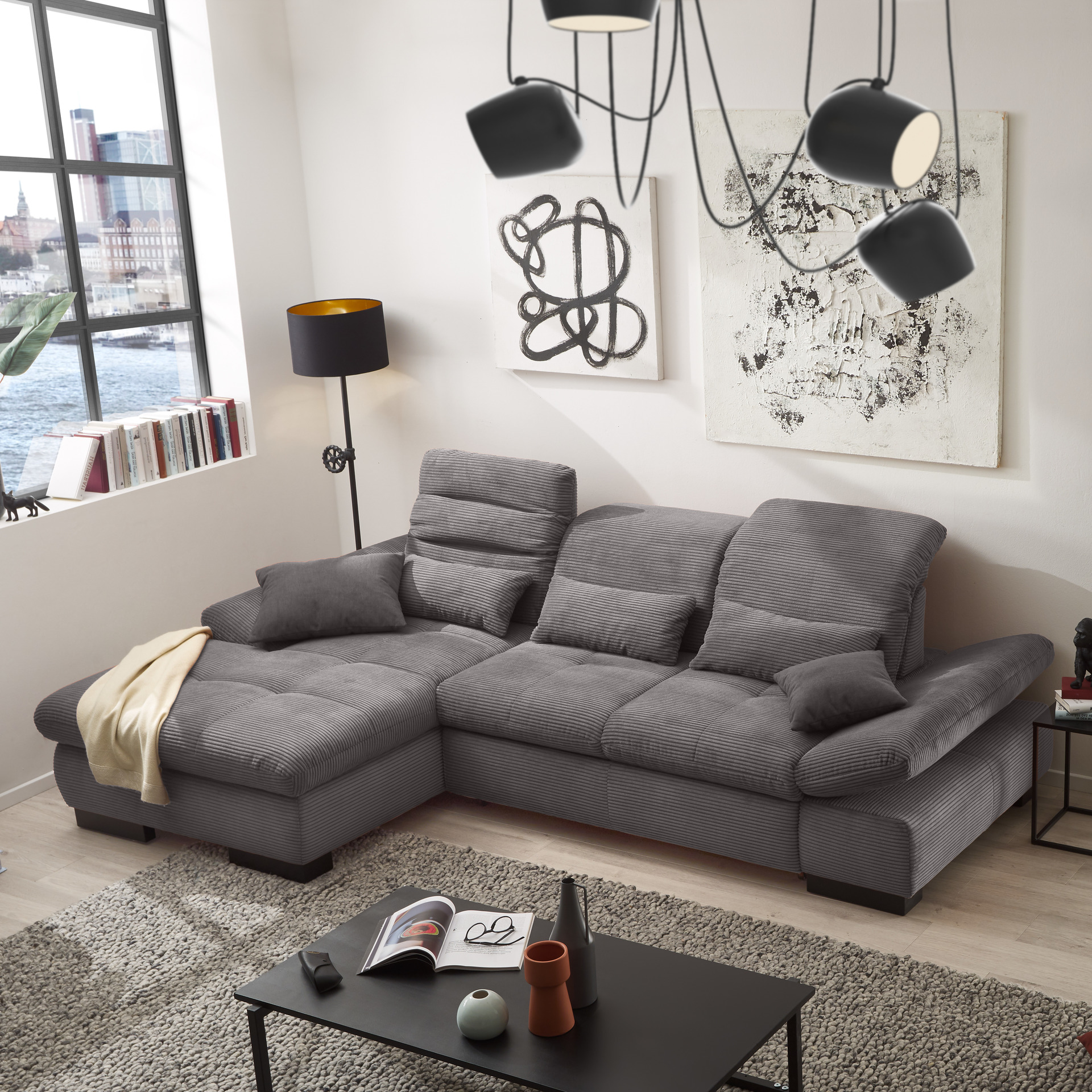 set one by Musterring set one by Musterring Ecksofa Cordula Grau Ottomane rechts