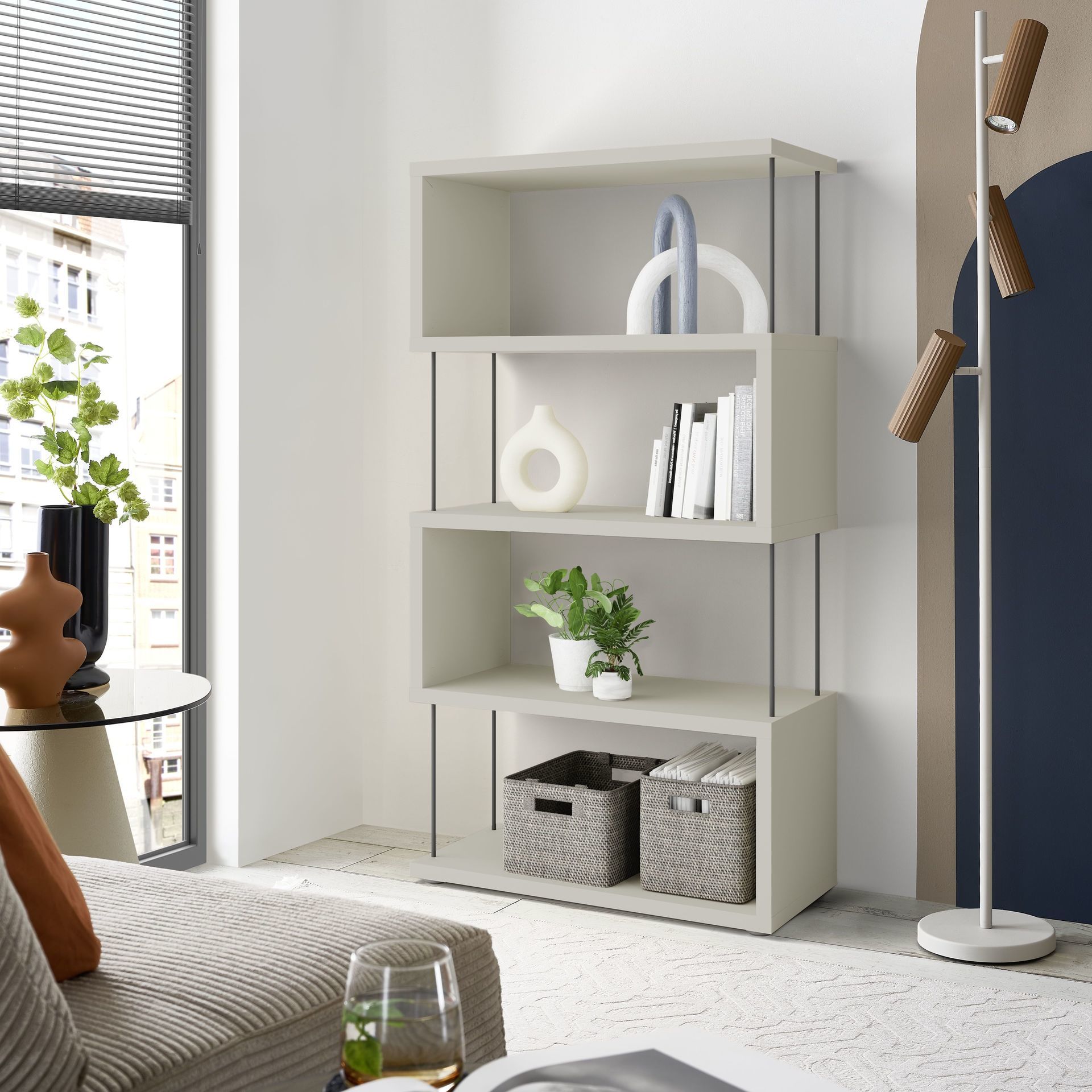 Regal Milano Front Weiß Korpus Beton Optilk