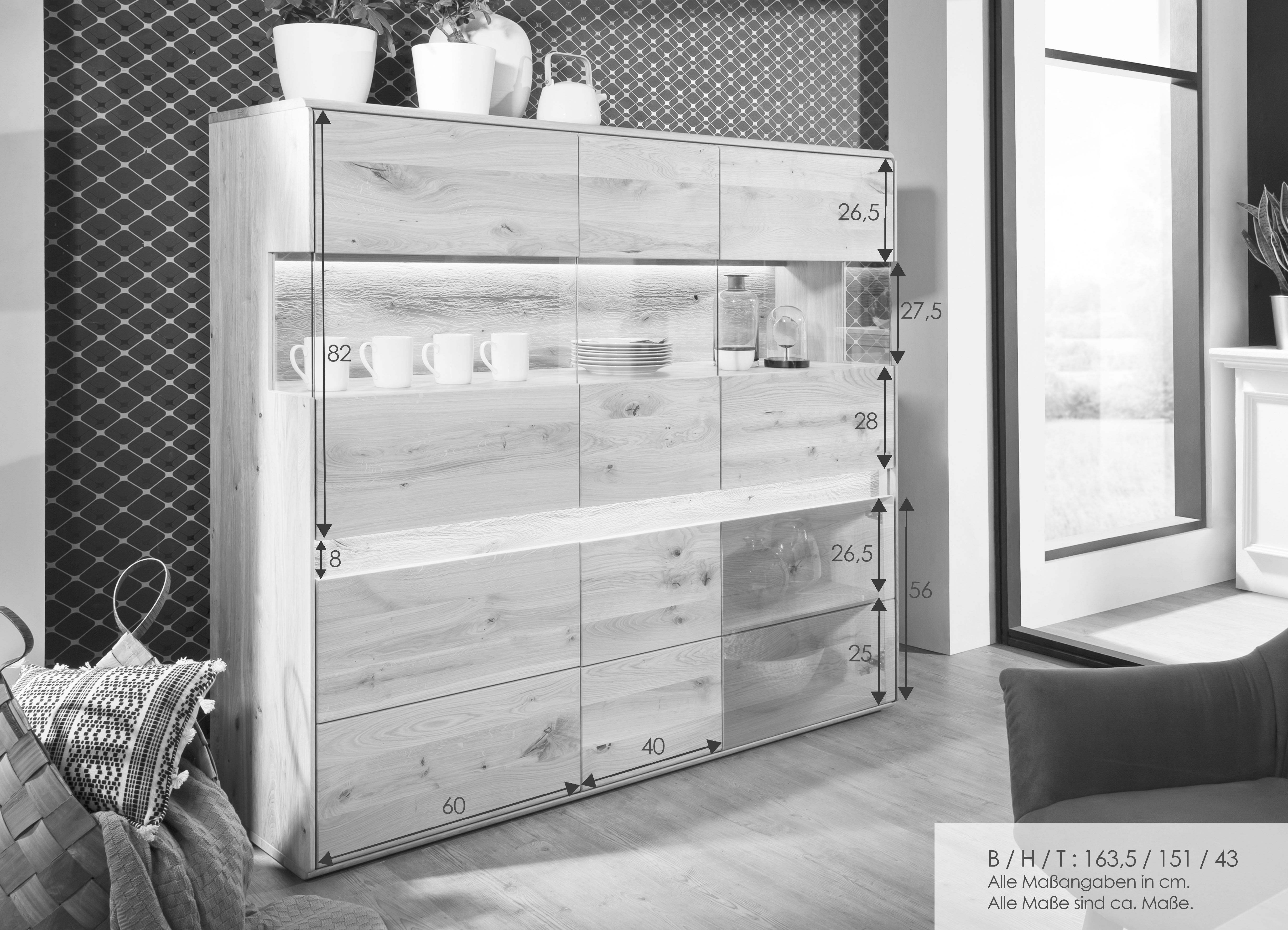 Musterring Musterring Highboard Kara-Frame Gestell Edelstahlfarben Front Eiche Sand Korpus Eiche Sand