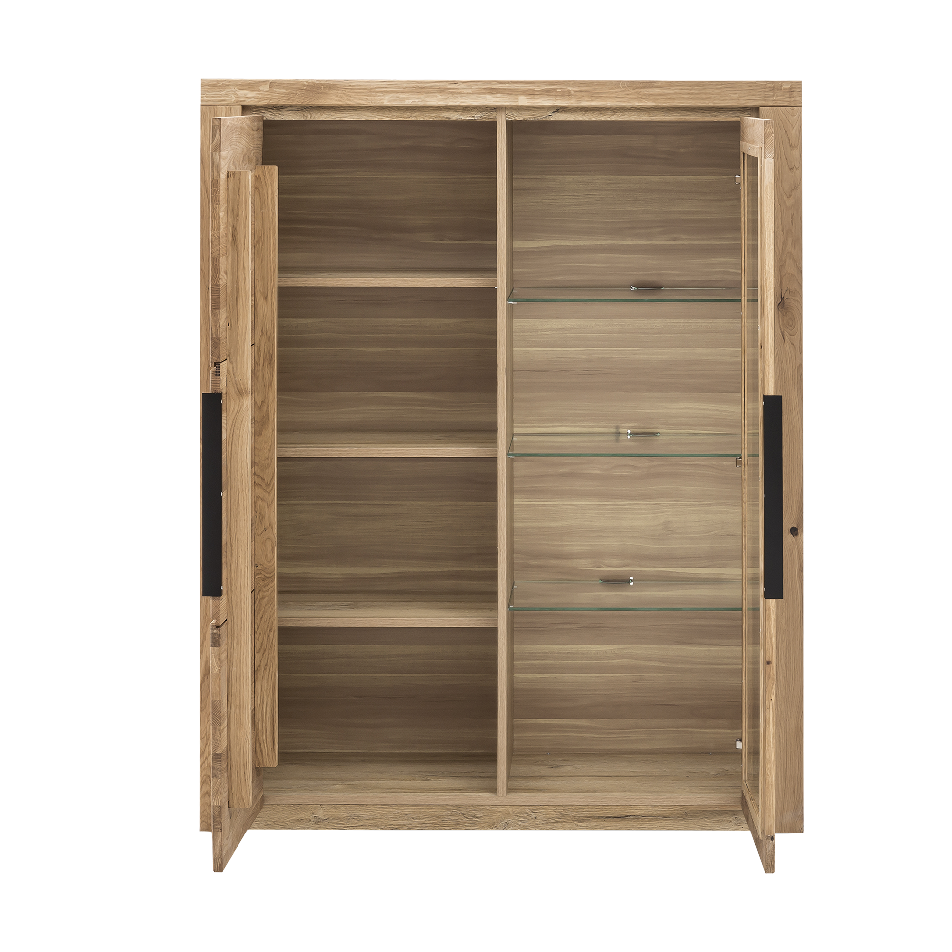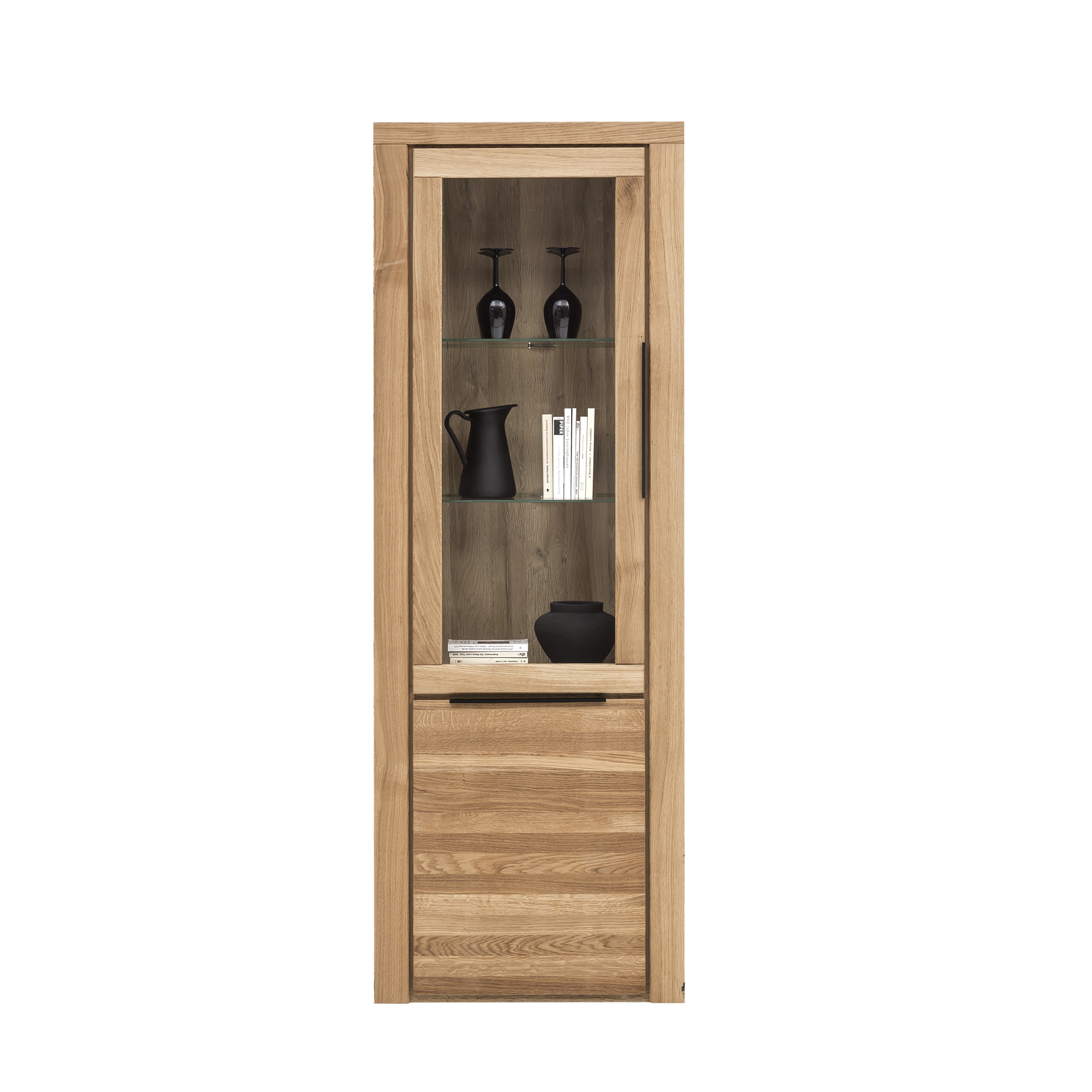 Musterring Musterring Vitrine Q-Media 2.0 Rückwand Eiche massiv gebürstet Front Mattglas Fango Korpus Lack Fango