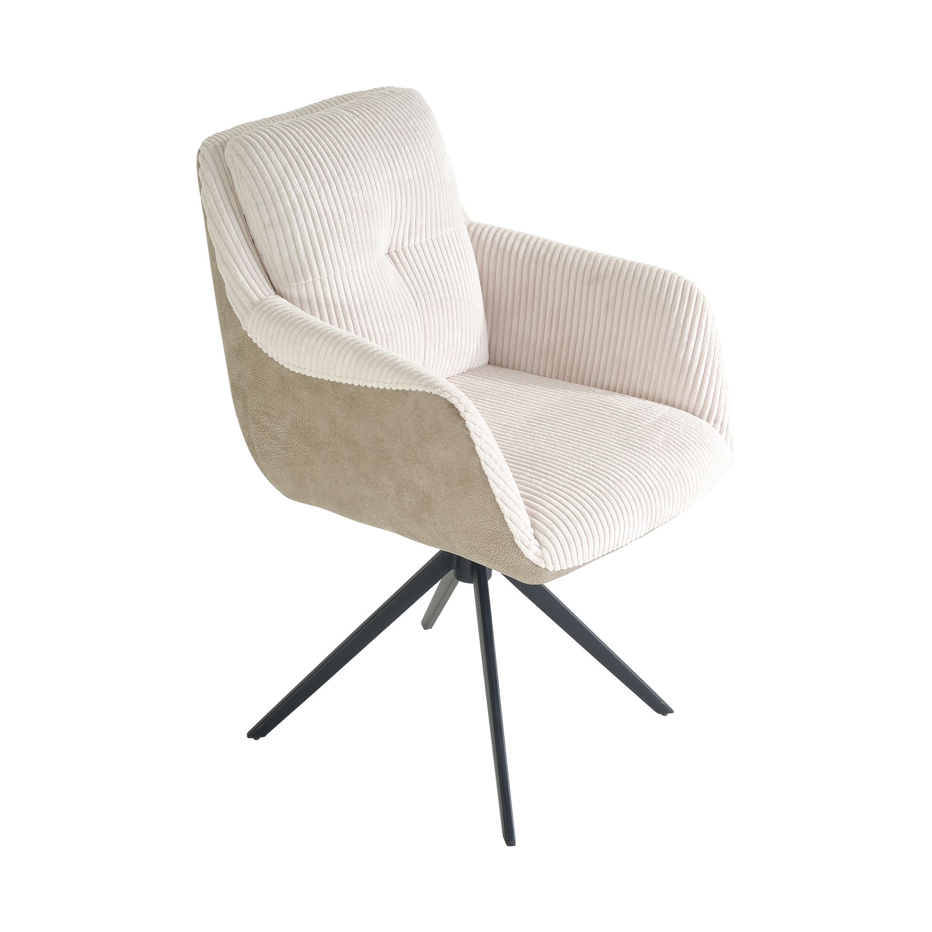 Armlehnstuhl Tufan Sitz Hellbeige Rücken Dunkelbeige Gestell Schwarz