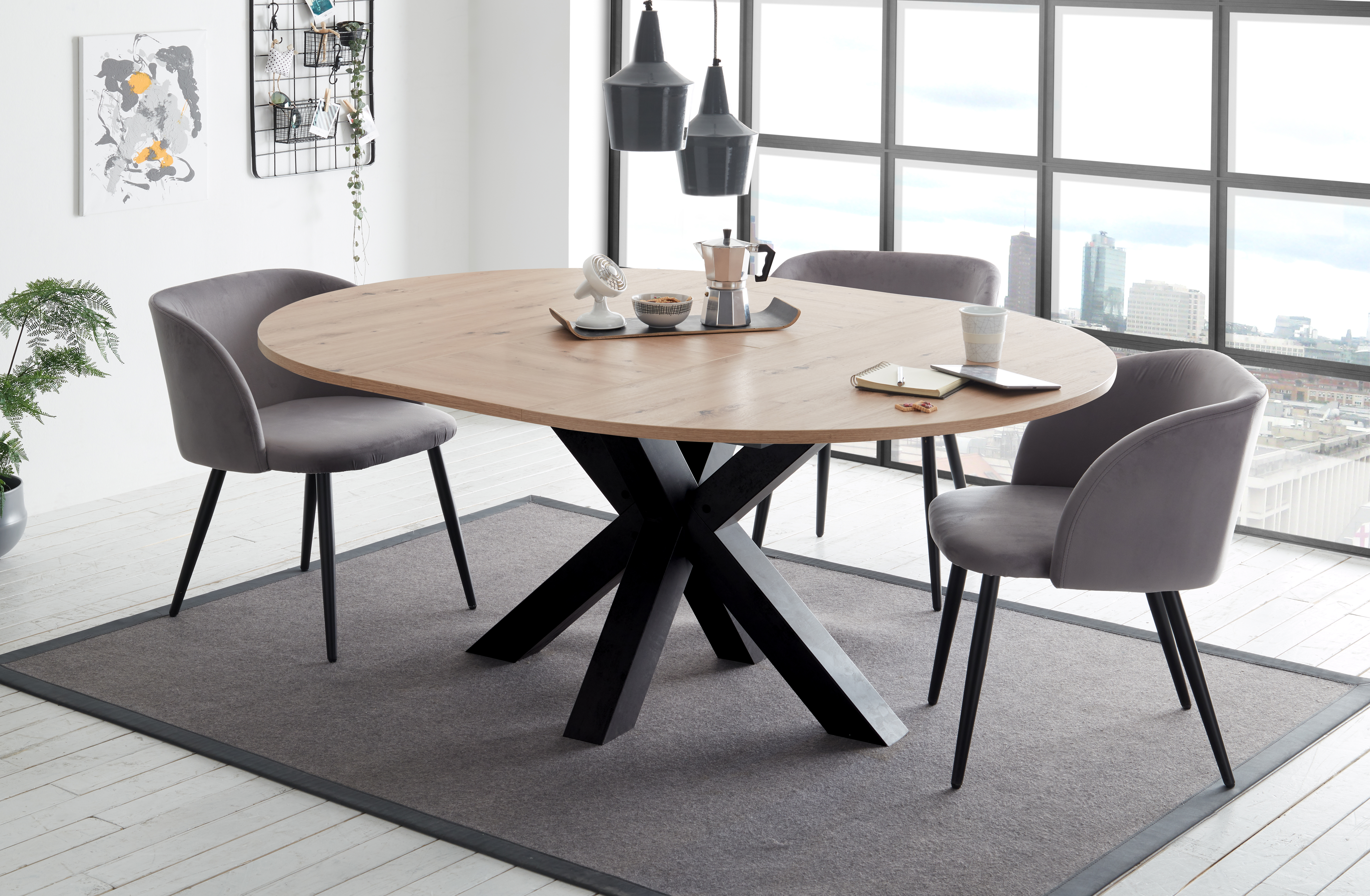 Farbe Gestell: Eichefarben Produktart: Esstisch mit Auszug