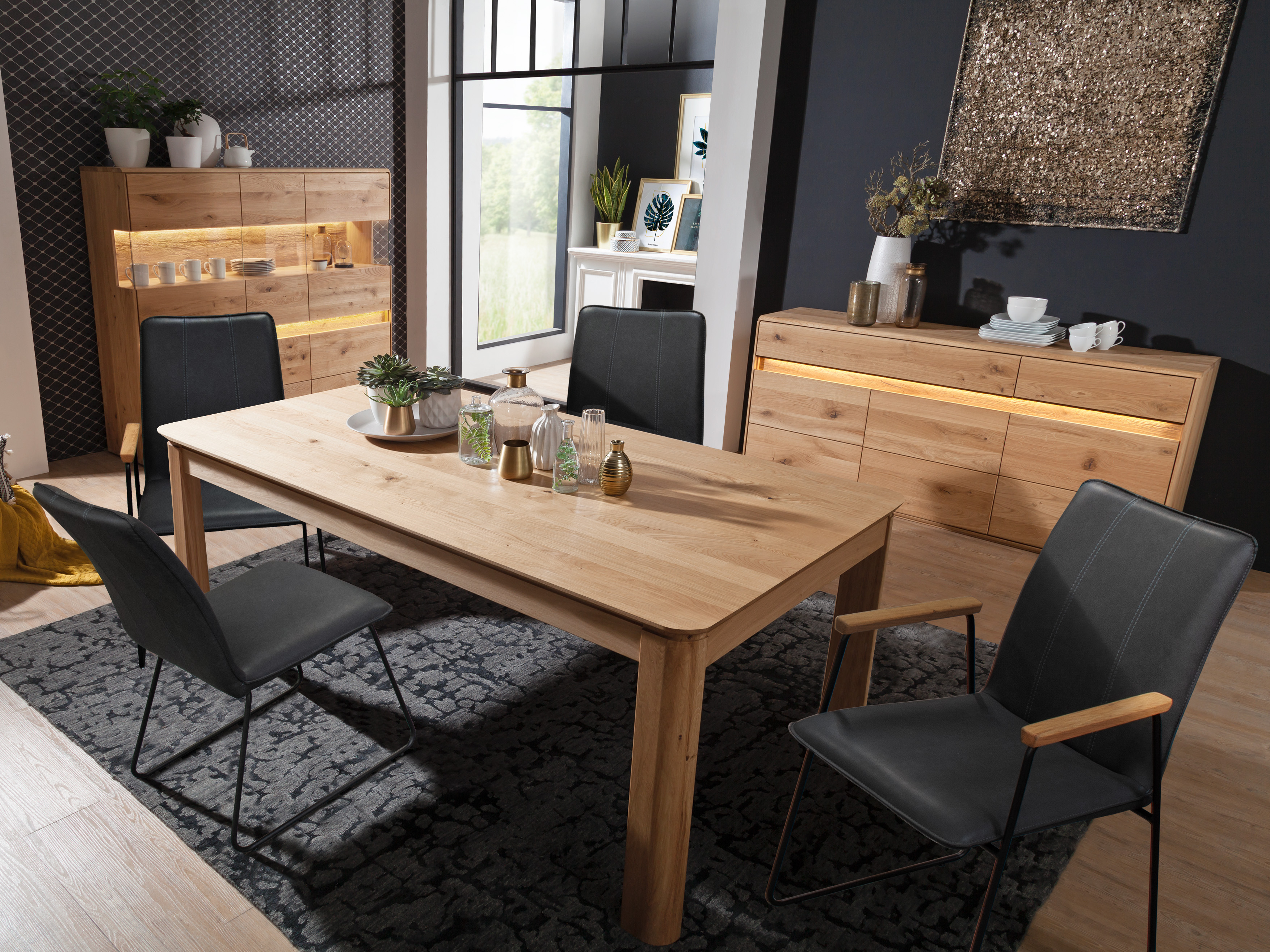 Standardgröße (cm): 220x100 Farbbezeichnung Platte: Eiche Massiv Schwarz, geschliffen & lackiert