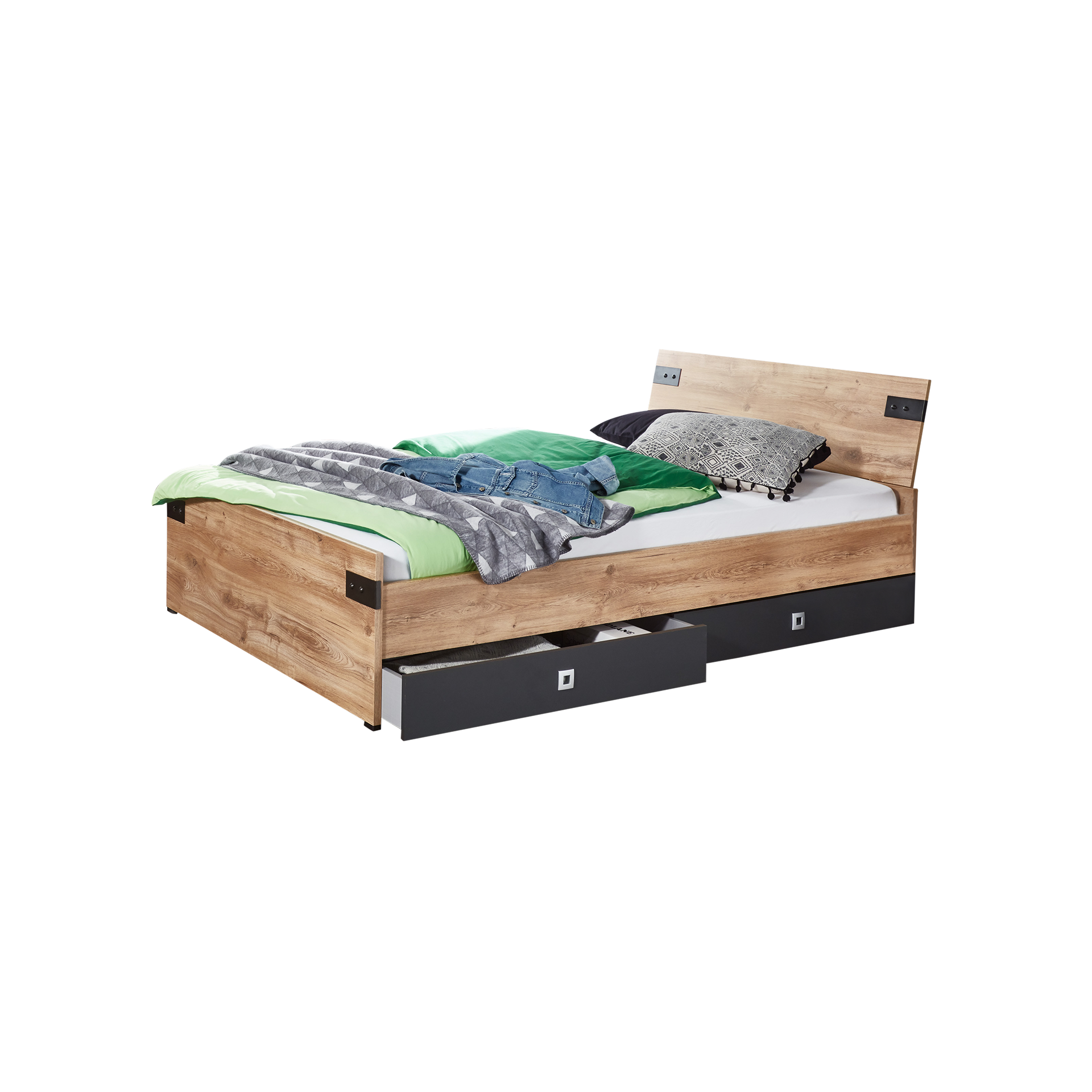 Funktionsbett Milano Rahmen Beton Optik Schubkasten Weiß Kopfteil Weiß 120x200 cm 349,00 €