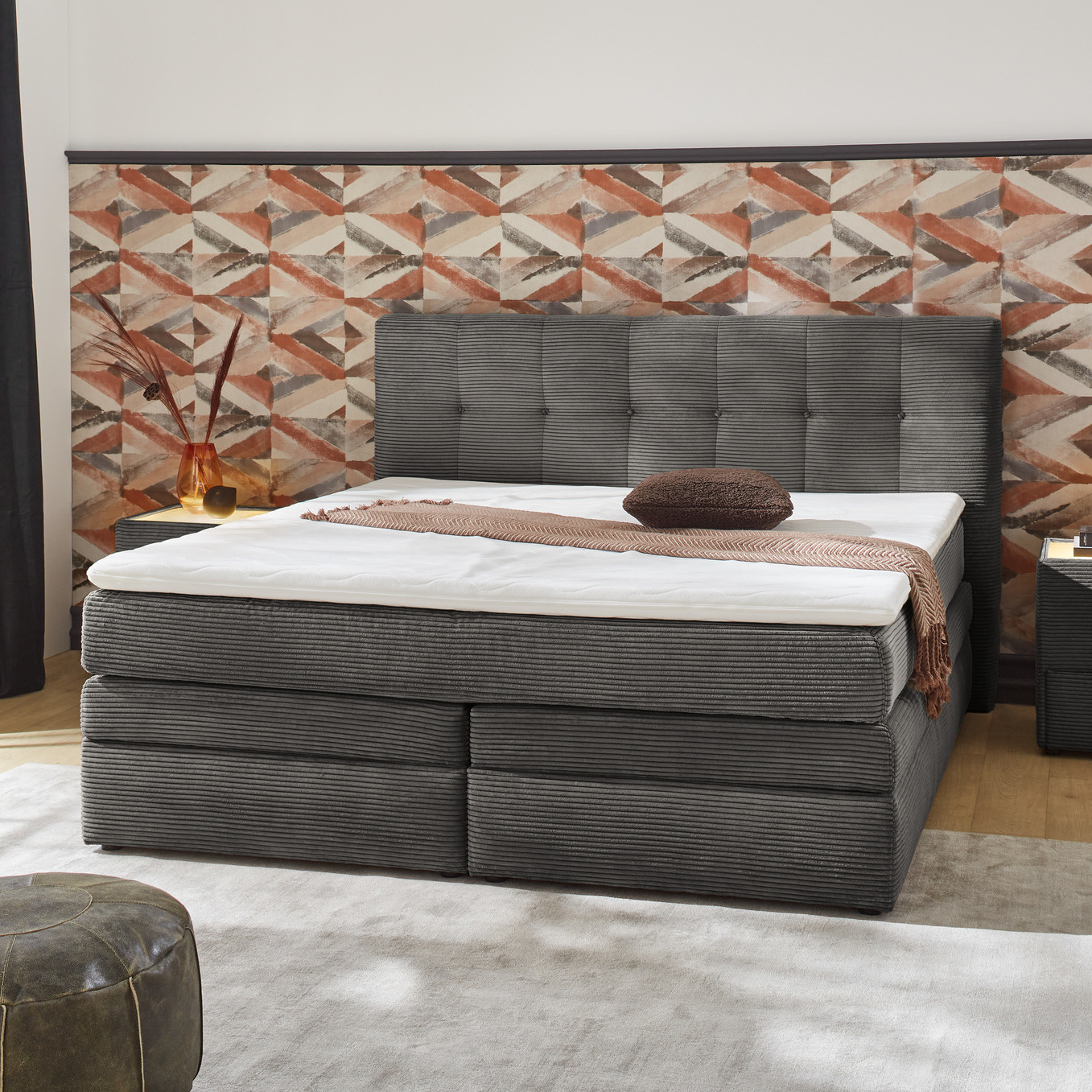 Polsterbett Mario Bezug Cord Dunkelgrau 140x200 cm