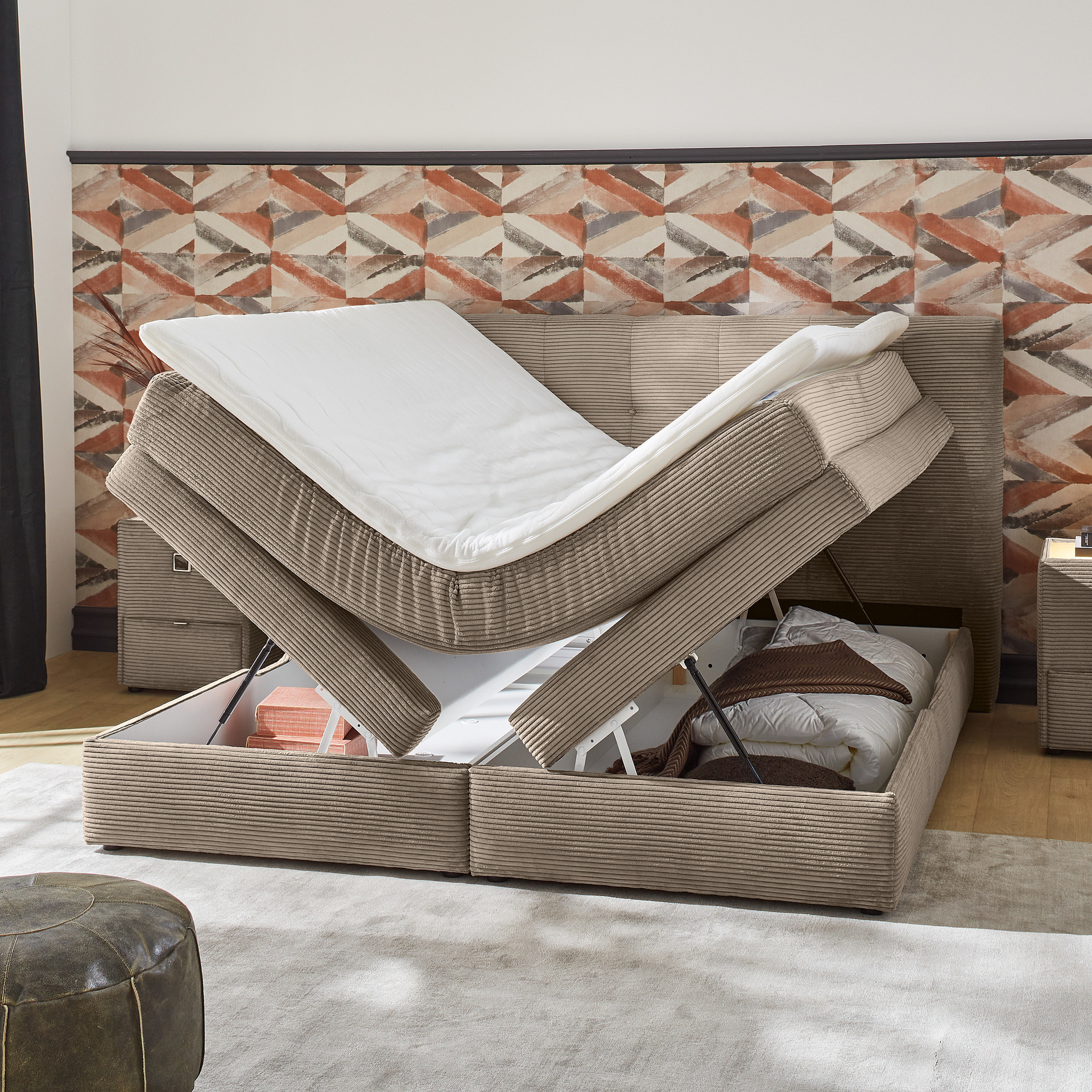 Boxspringbett Arny Braun 180x200 cm Matratze 1 H3 - fest, ab ca. 80 kg Matratze 2 H3 - fest, ab ca. 80 kg 1.398,00 €