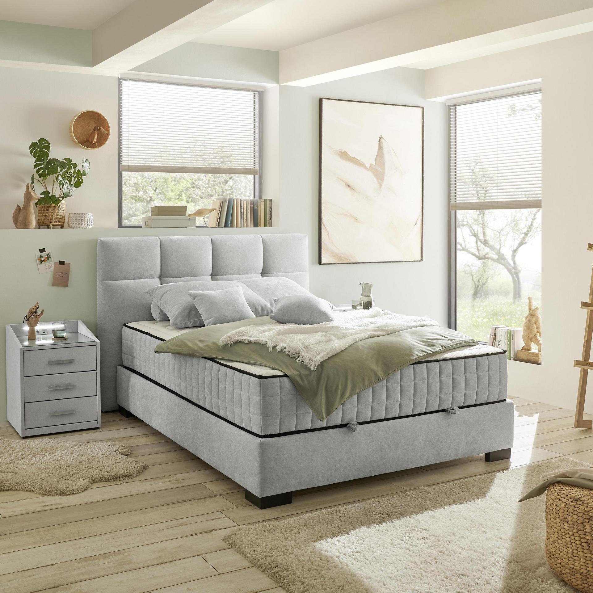 Boxbett Nago A Silber 140x200 cm Liegefläche H2 - mittelfest, bis ca. 80 kg