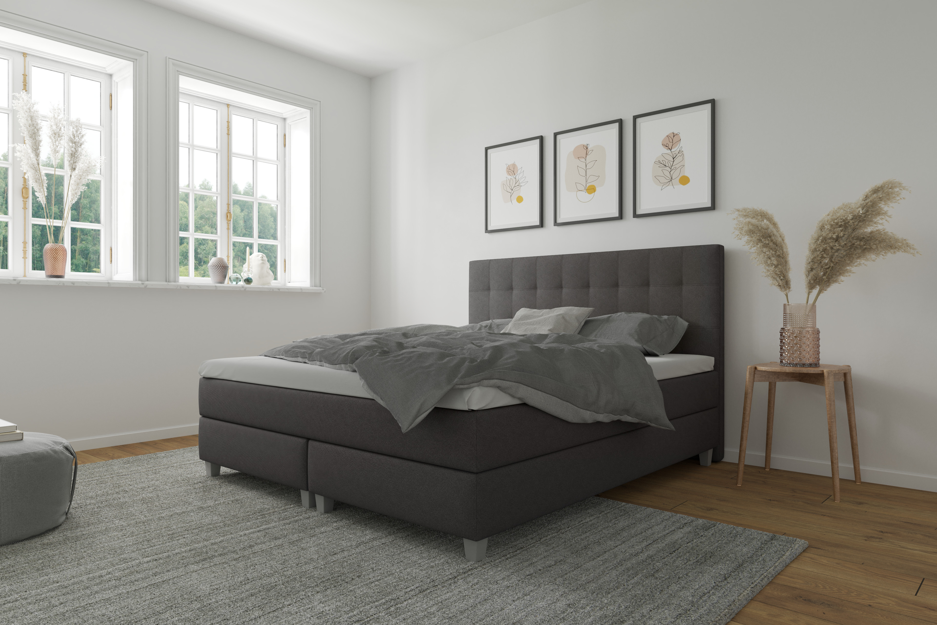 Paul Phillip Paul Phillip Boxspringbett Dita Anthrazit 140x200 cm Matratze H3 - fest, ab ca. 80 kg