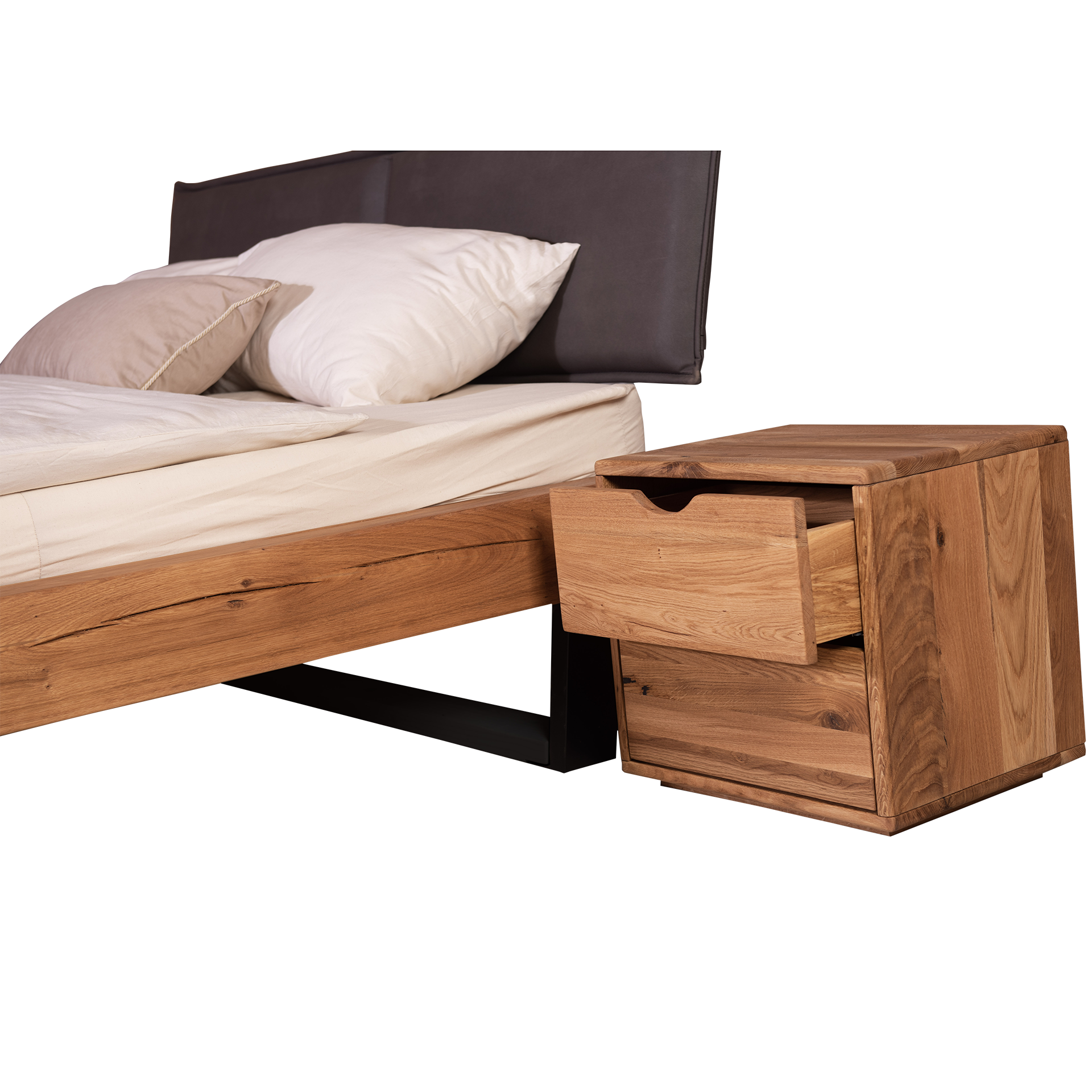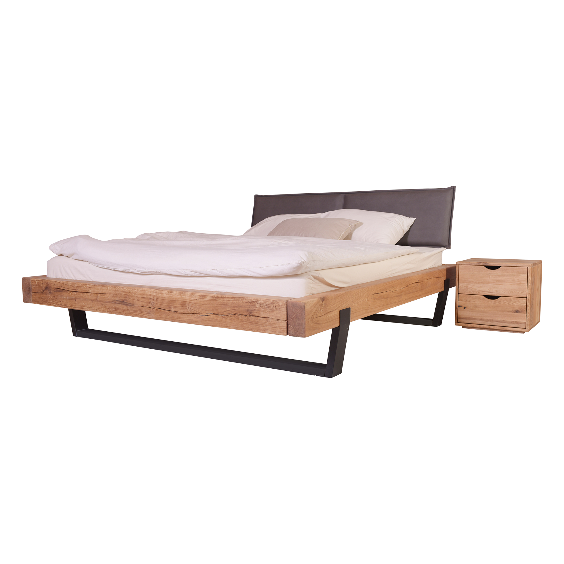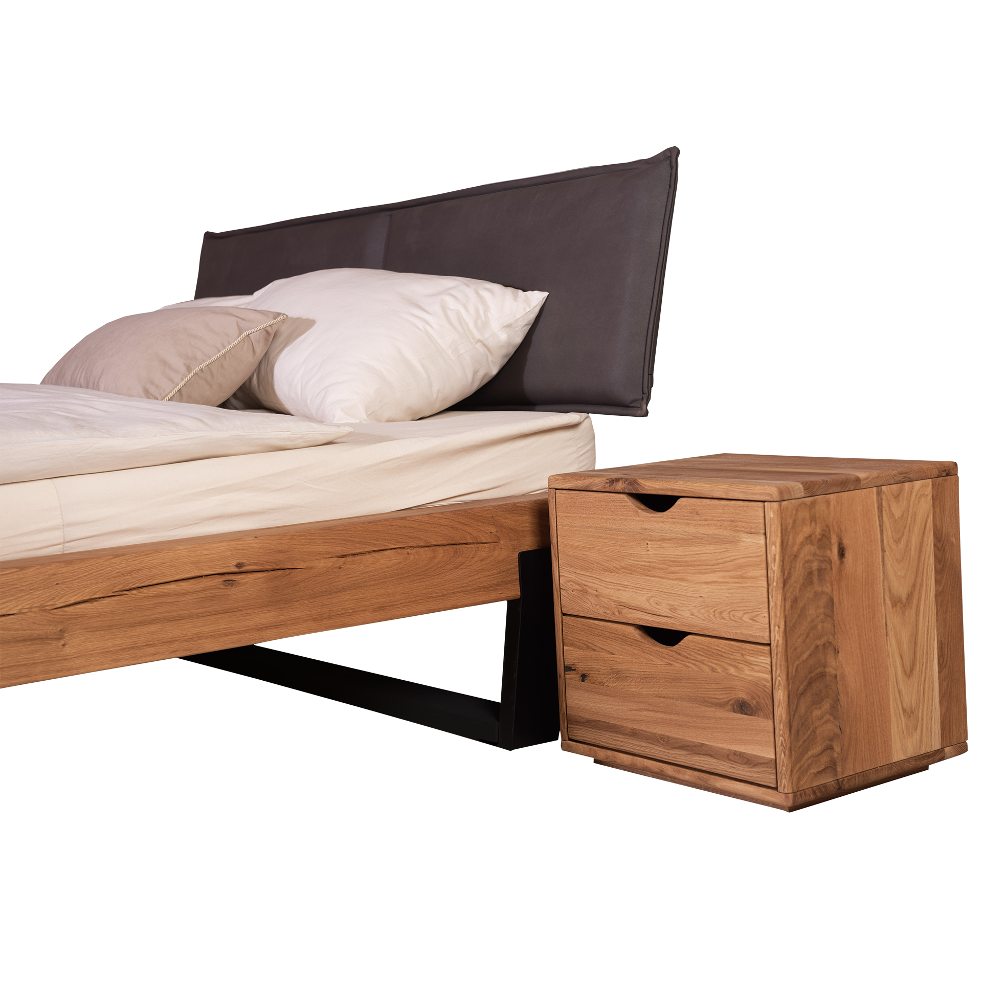 HASENA HASENA Bett Sondrio Gestell Wildeiche Kopfteil Kul Smoke Fuß Anthracite 100x200 cm
