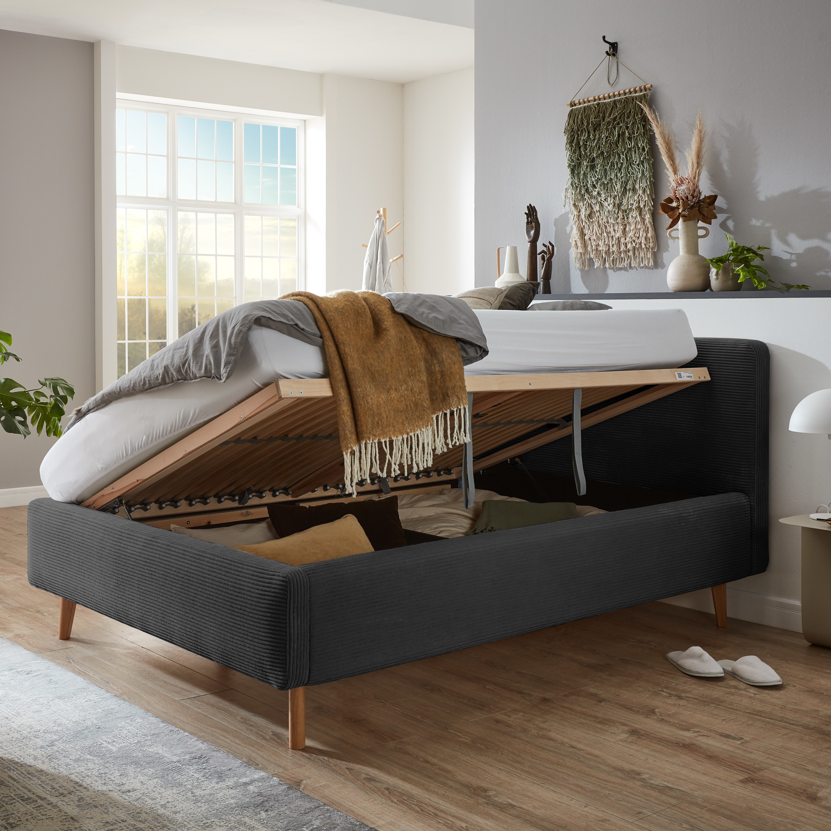 Farbbezeichnung Bezug: Cord Anthrazit Funktion Bettkasten: Ja Liegefläche: 140 x 200 cm