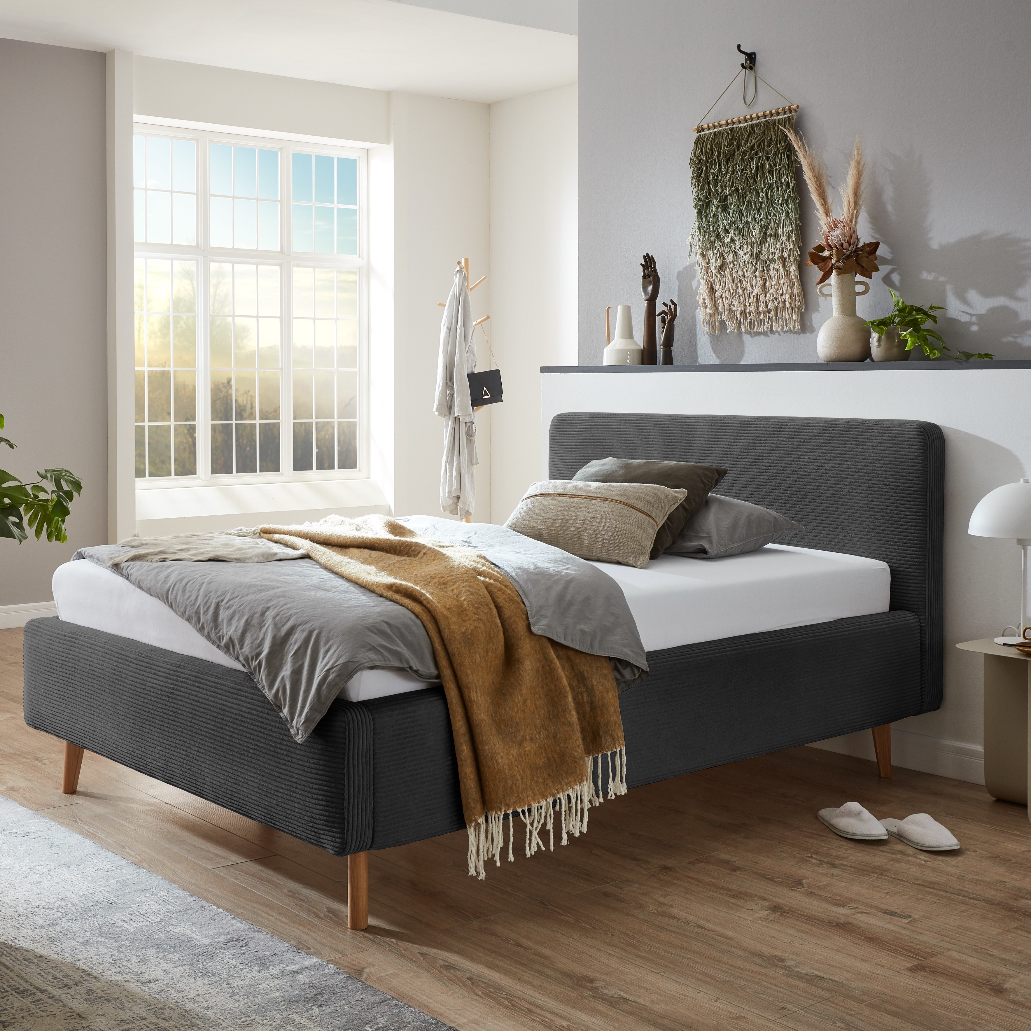 Polsterbett Mario Bezug Cord Anthrazit 140x200 cm