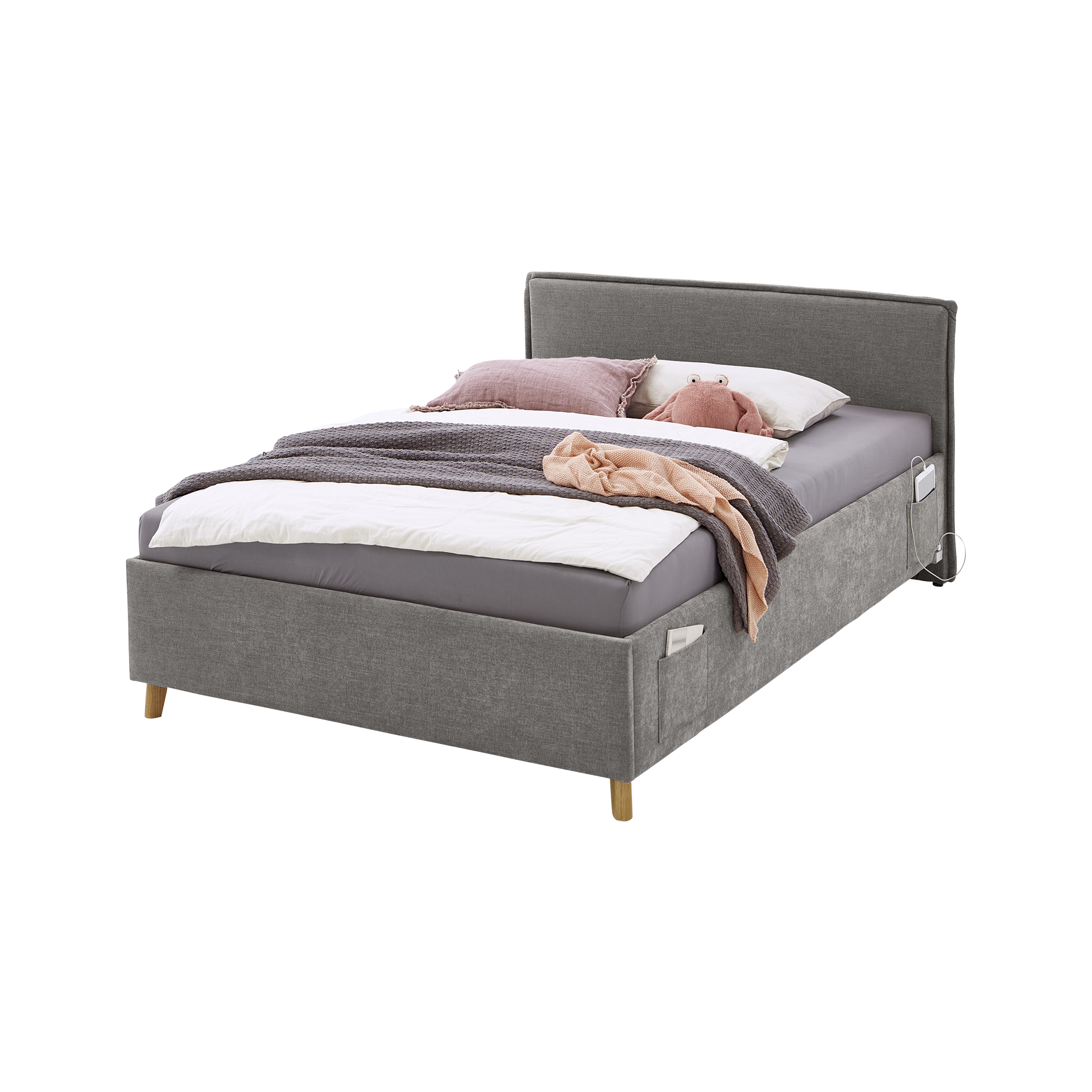 Polsterbett Mario Bezug Yunus Grey Fuß Eichefarben 140x200 cm 1.248,00 €