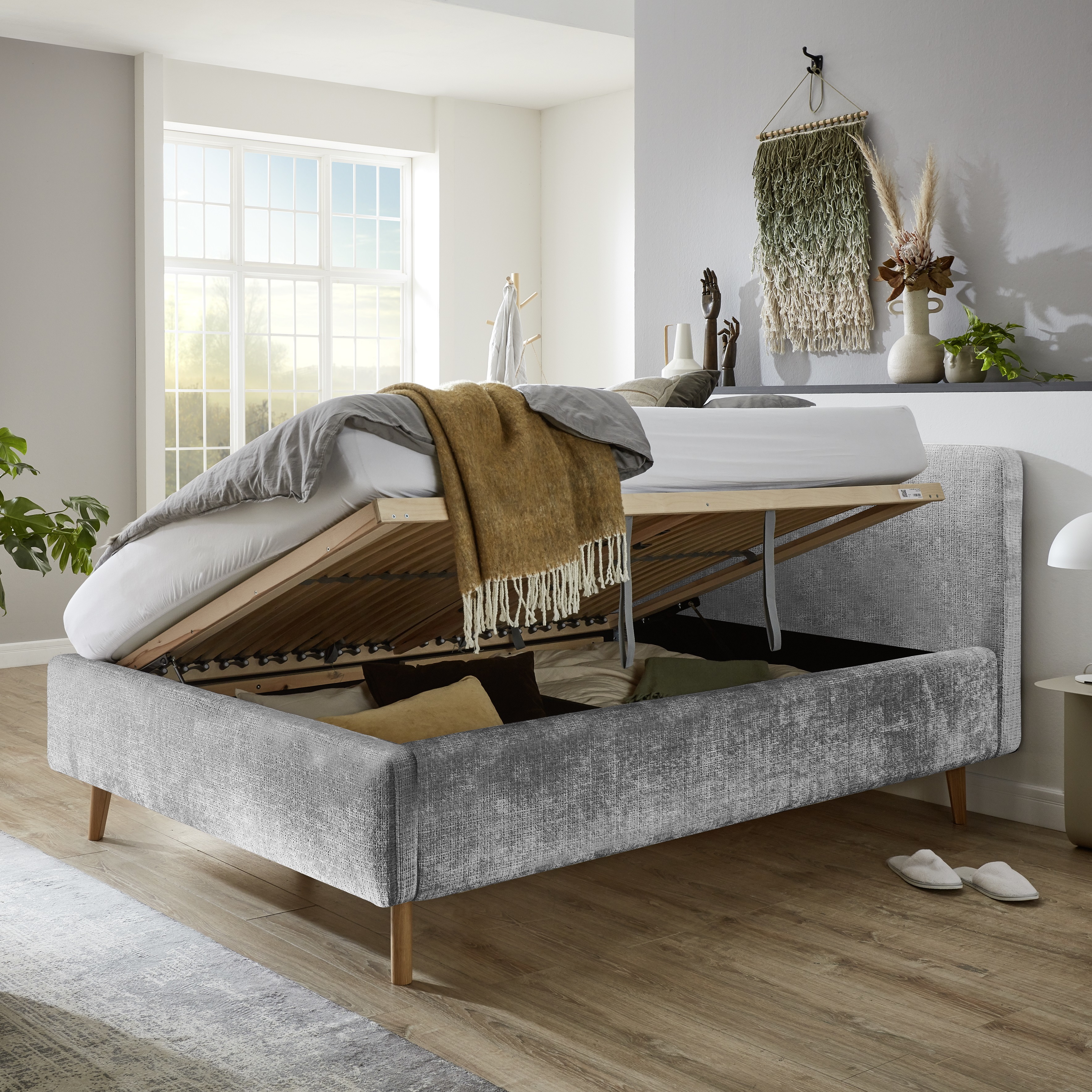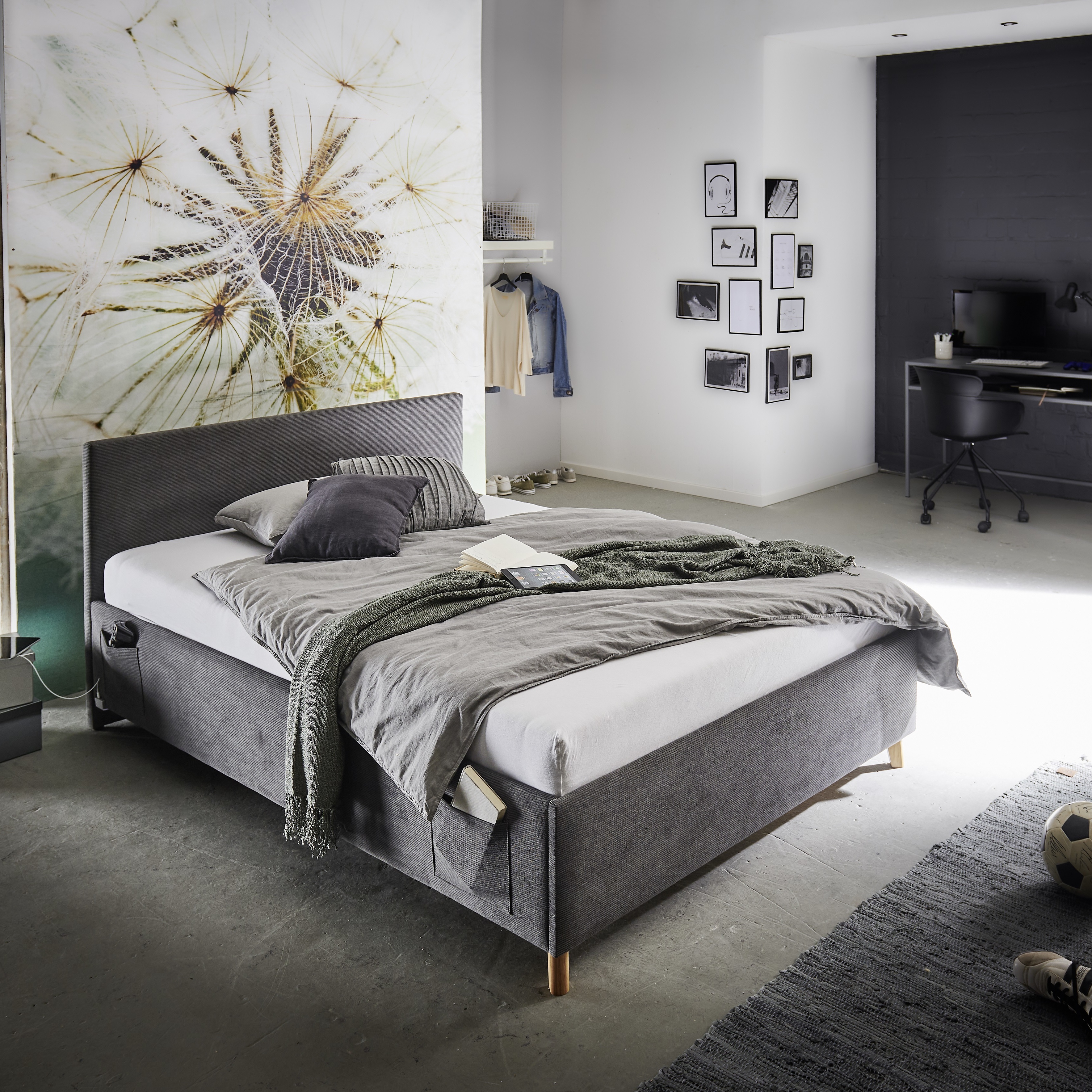 Polsterbett Mario Bezug Yunus Grey Fuß Eichefarben 160x200 cm 1.298,00 €