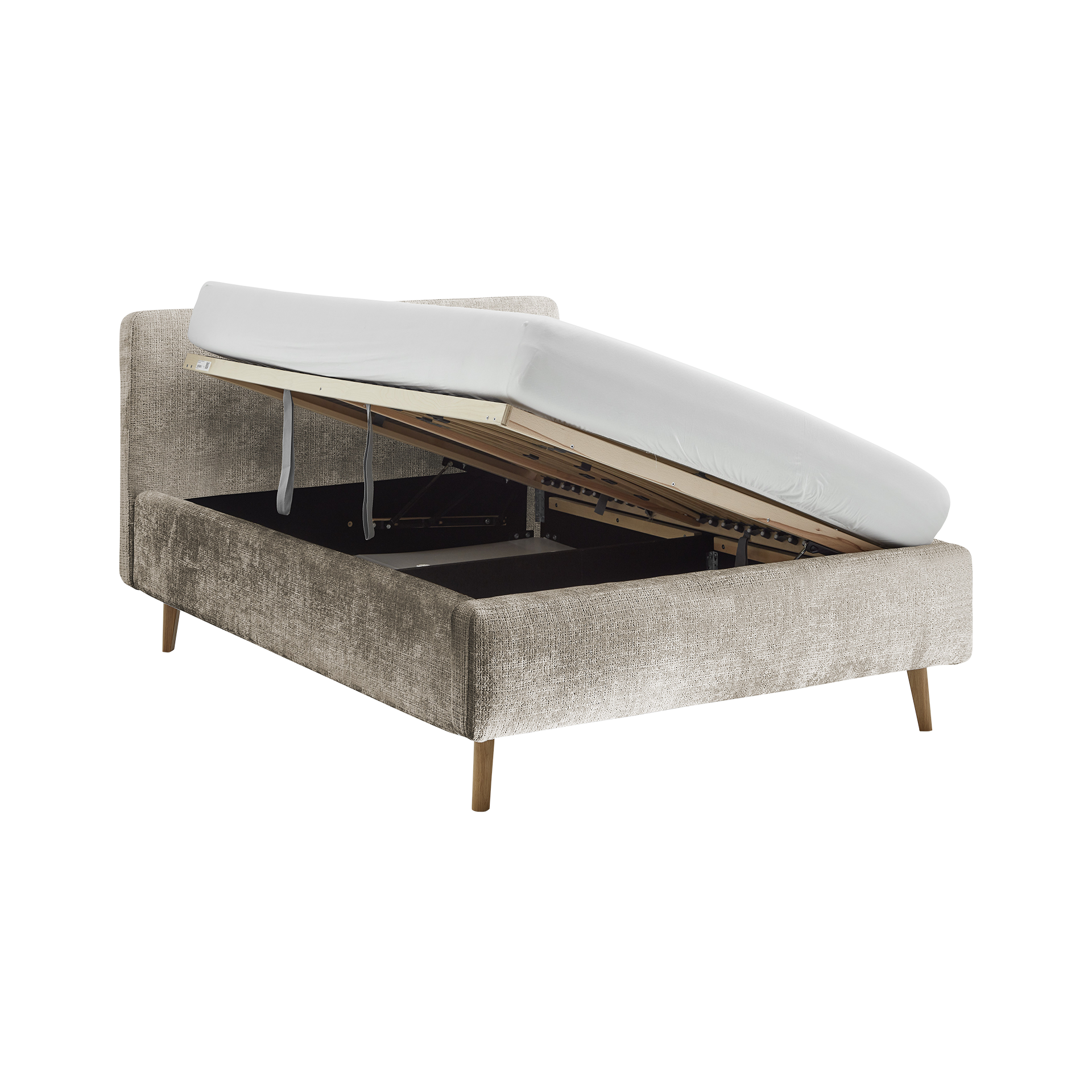 Polsterbett Funda Bezug Hope Beige Fuß Eichefarben 90x200 cm