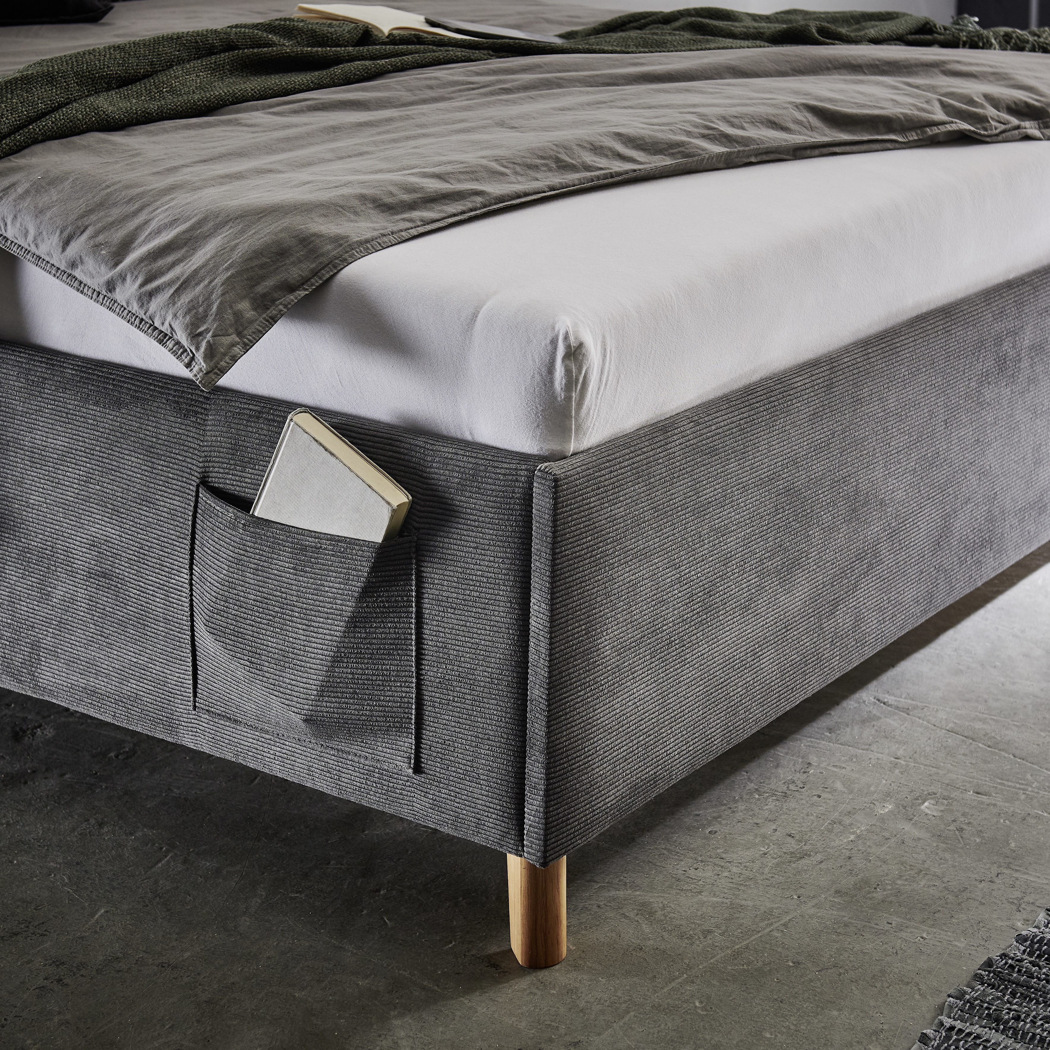 Polsterbett Mario Bezug Cord Dunkelgrau 160x200 cm