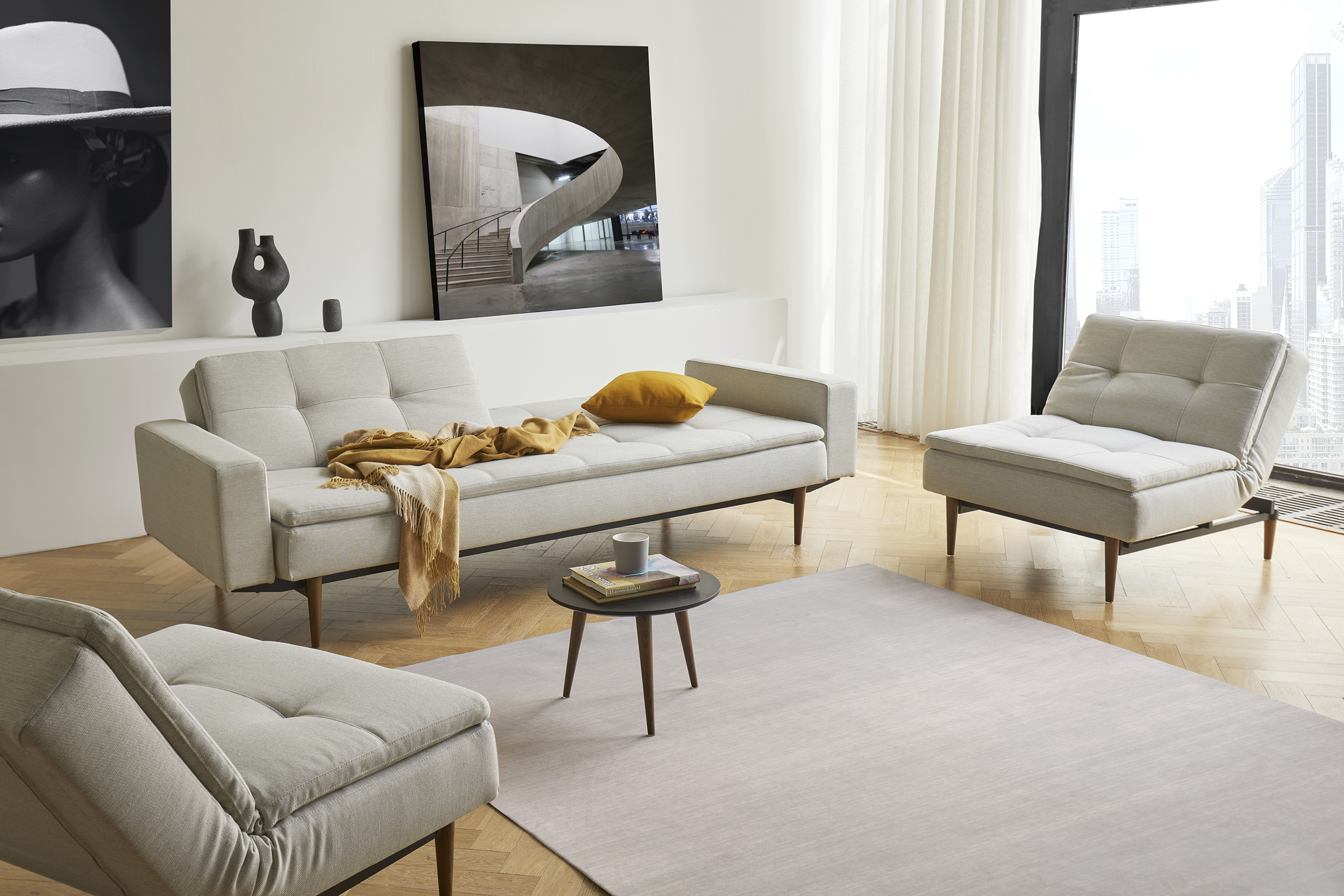 INNOVATION LIVING INNOVATION LIVING Schlafsofa Dublexo Styletto Bezug Natural Gestell Mattschwarz Eichefarben