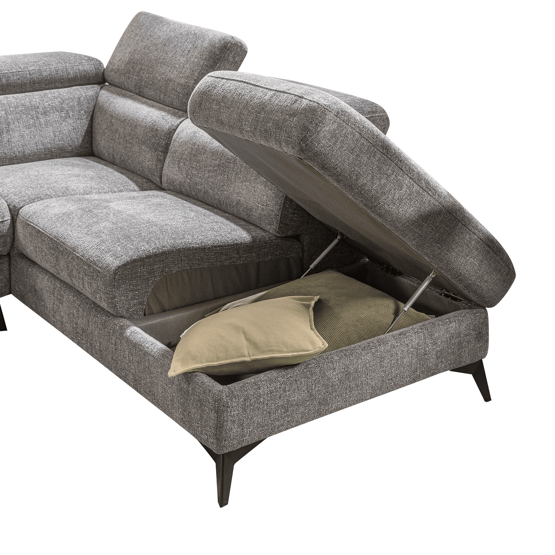 Inovationi Inovationi Ecksofa Leon Grau Kopfstütze manuell verstellbar Relaxfunktion motorisch verstellbar Ottomane links