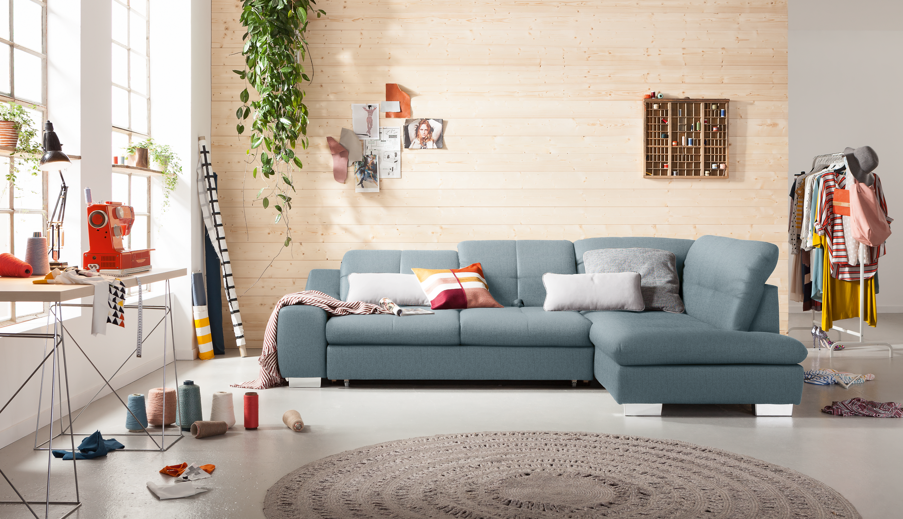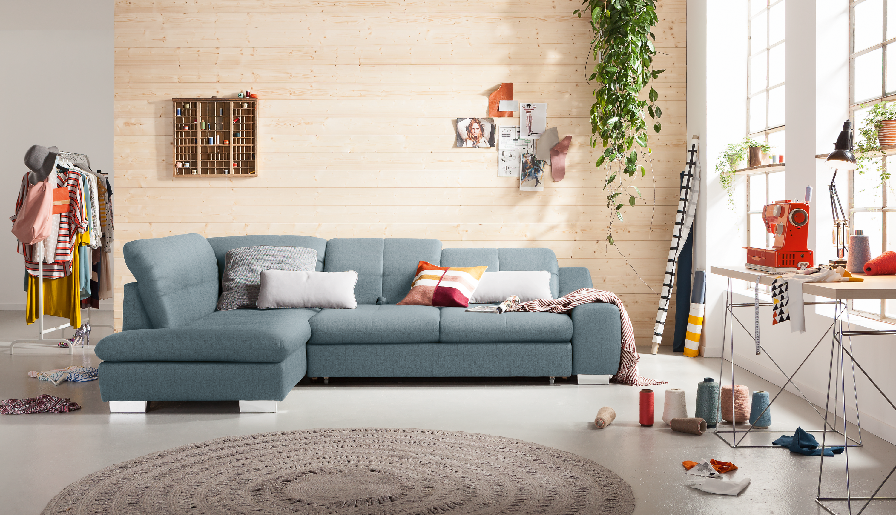 set one by Musterring set one by Musterring Ecksofa SO 4400 Blau Ottomane rechts