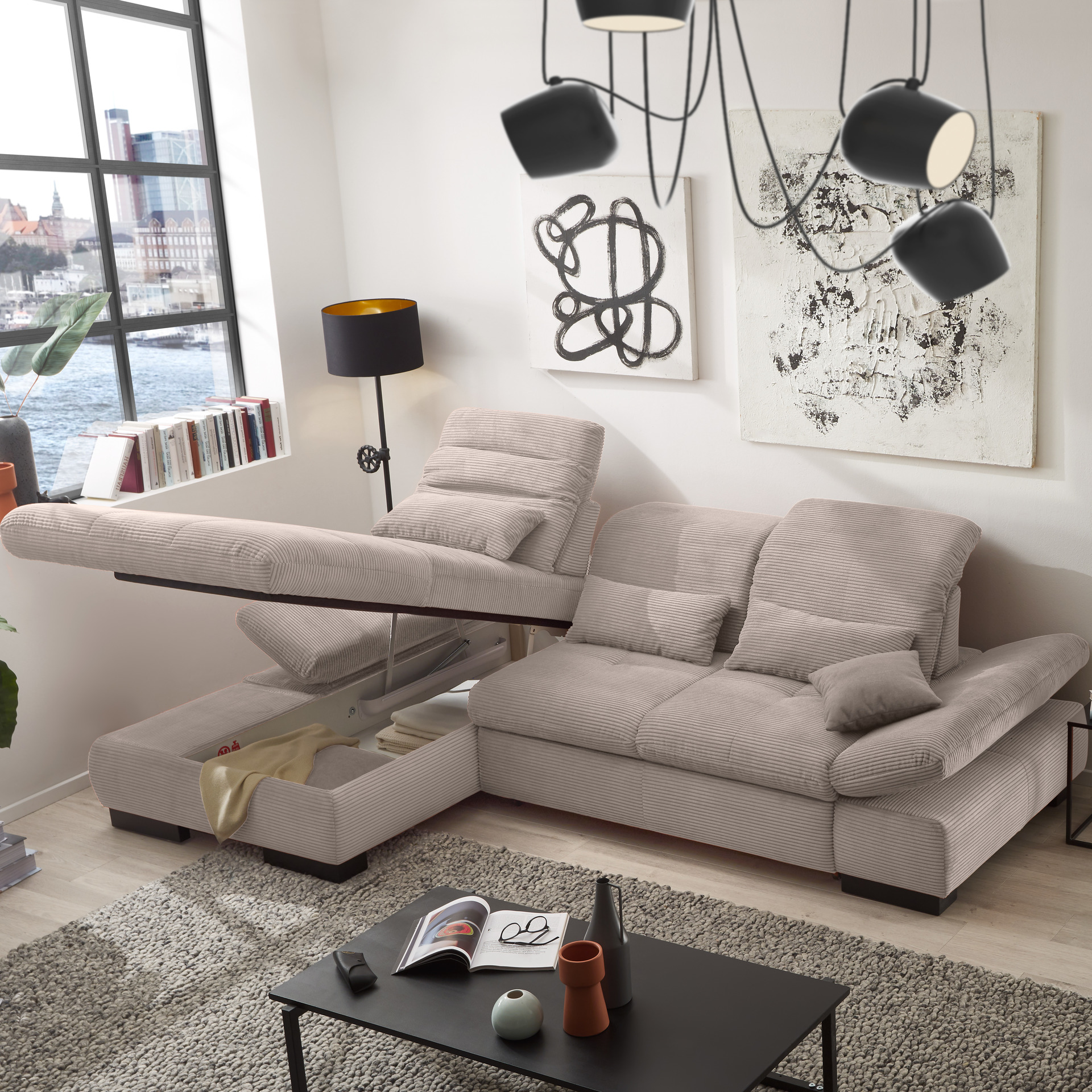 set one by Musterring set one by Musterring Ecksofa Cordula Grau Ottomane rechts