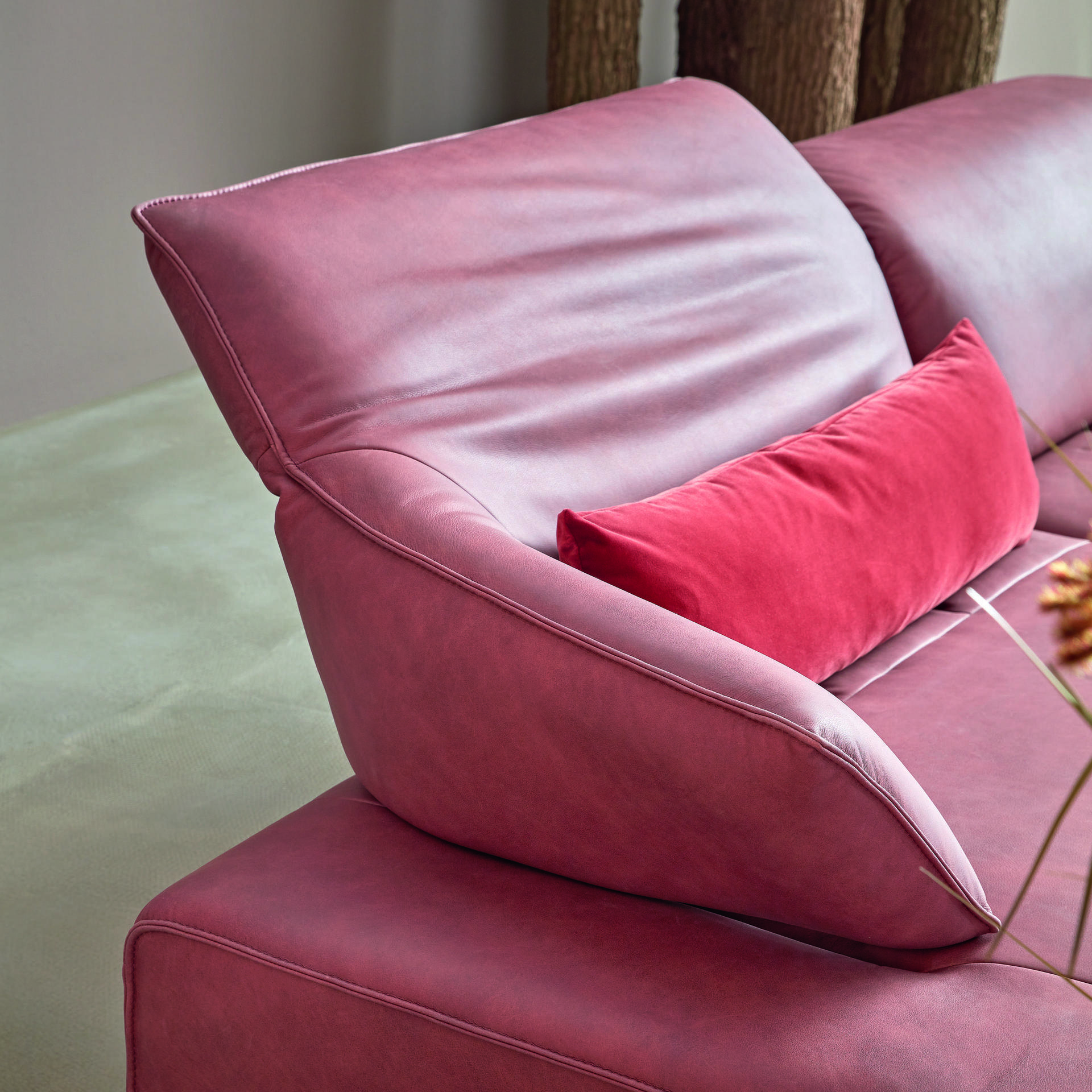 Global wohnen Global wohnen Ecksofa Felipa Leder Retro Olive Rücken echt Kopfteilverstellung