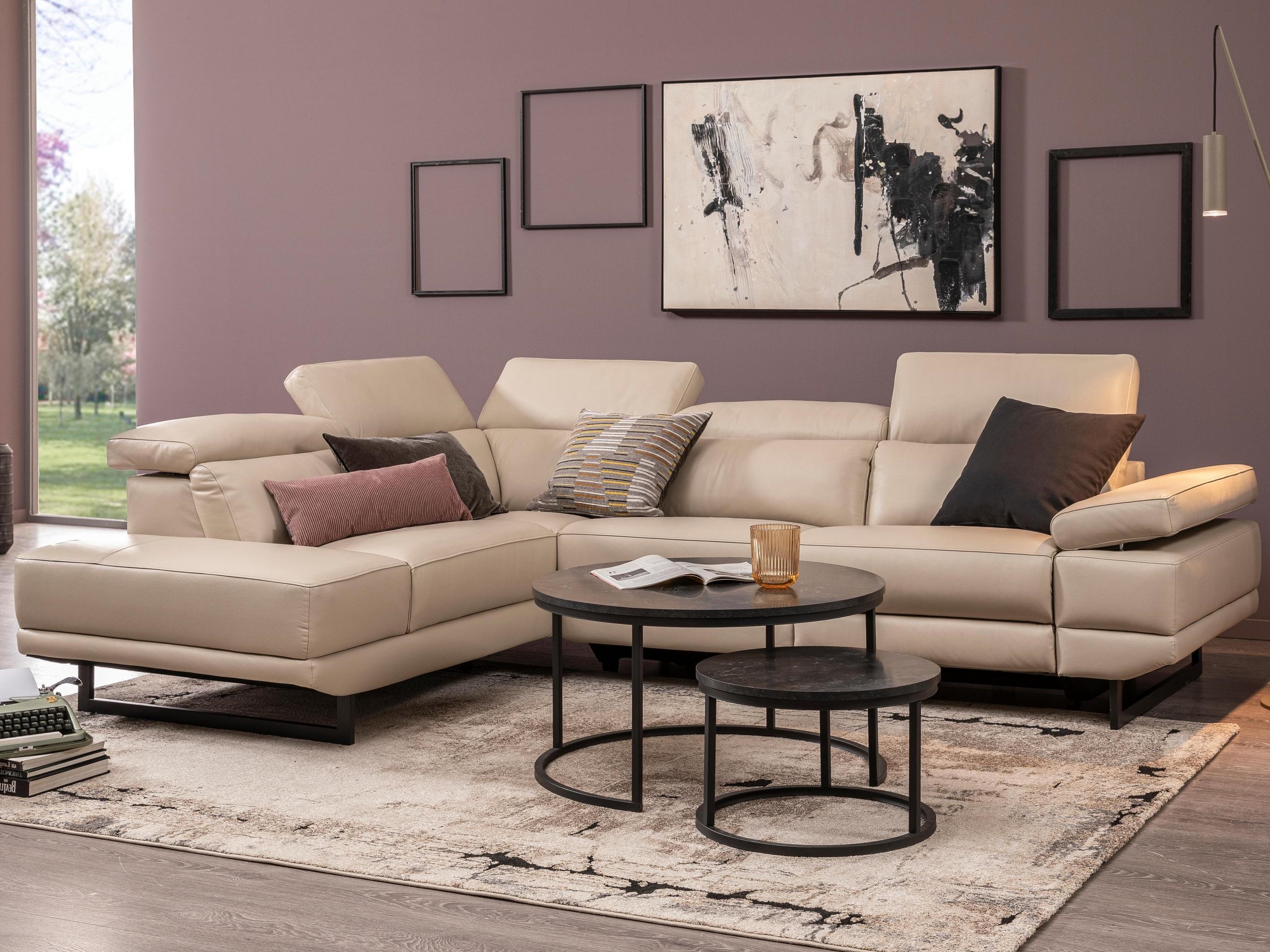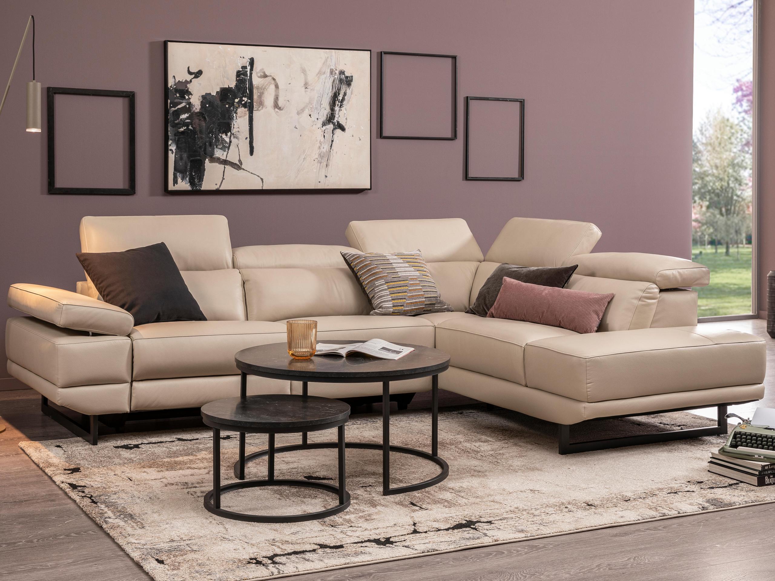 Global wohnen Global wohnen Ecksofa Felipa Leder Retro Grey Rücken echt Kopfteilverstellung