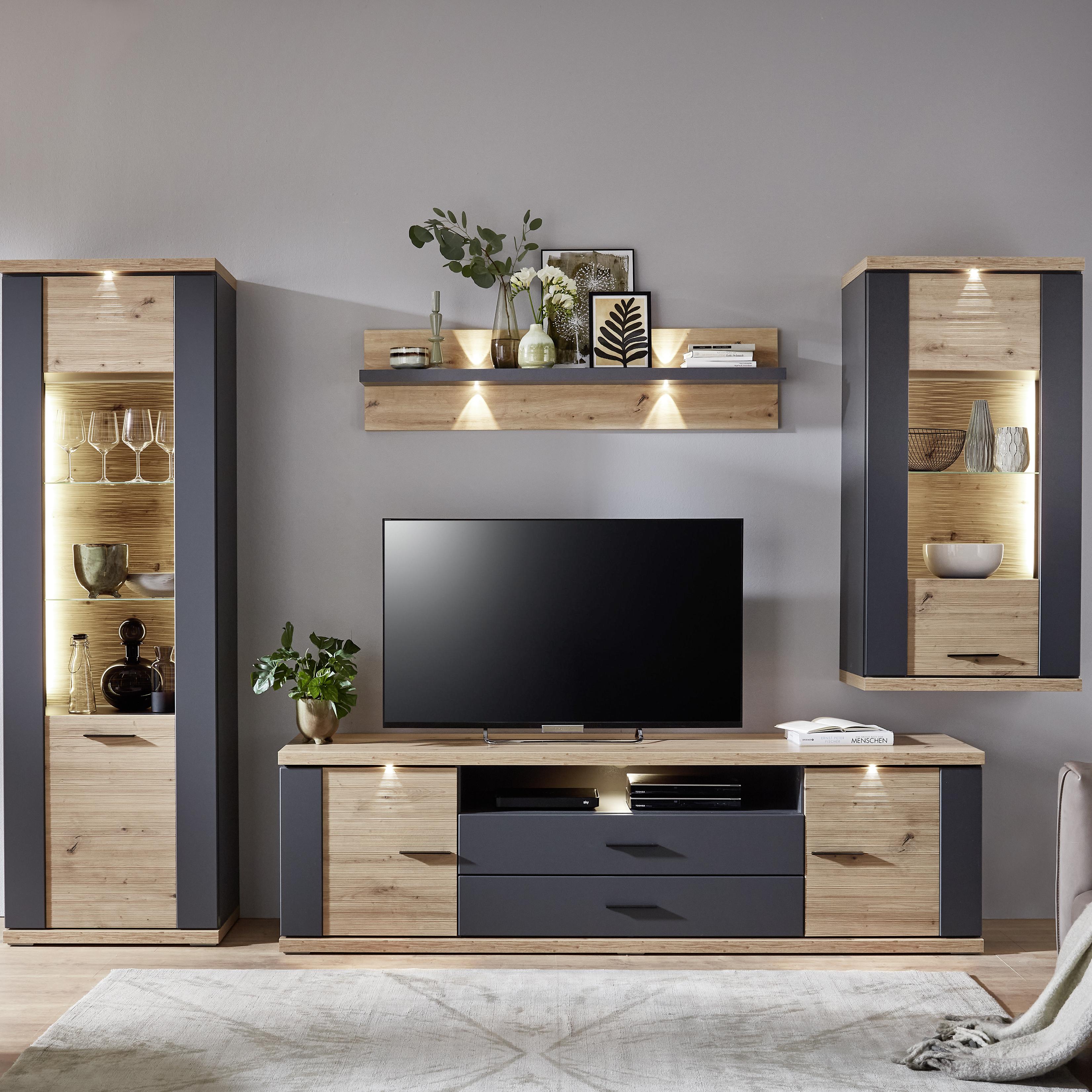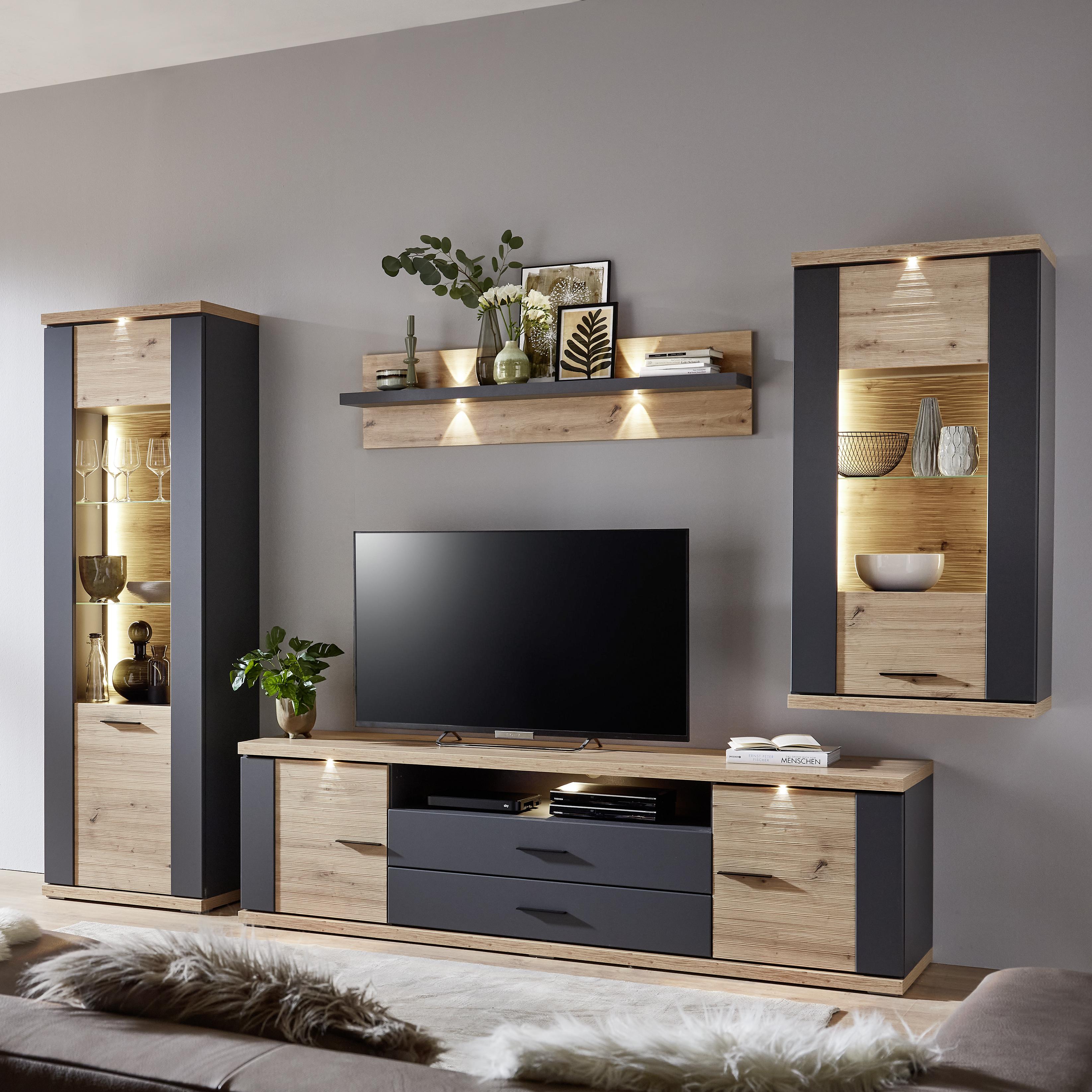 Hartmann Hartmann Wohnwand Vara Kerneiche Umato Absetzung Anthrazit inklusive Beleuchtung