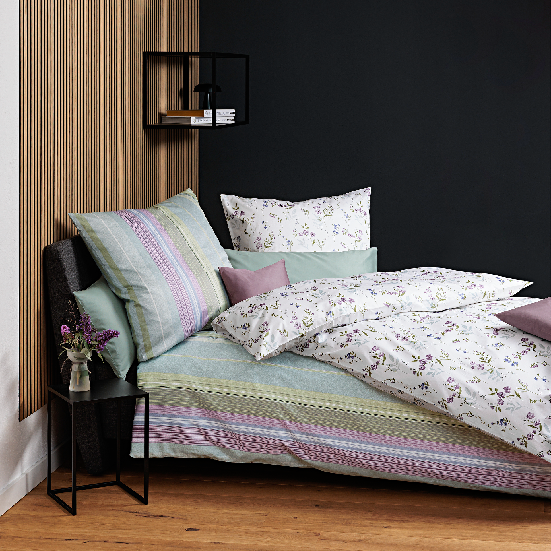 Janine Satin Bettwäsche Palermo Lila-Salbeigrün 135x200cm