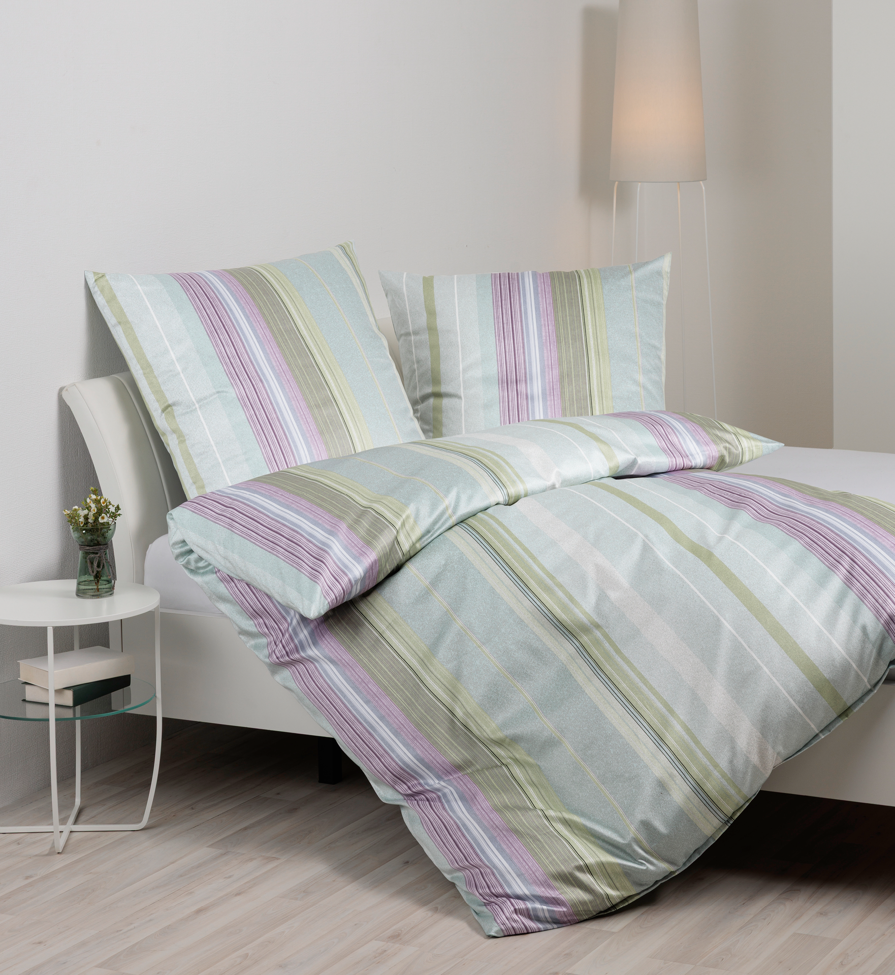 Janine Satin Bettwäsche Palermo Lila-Salbeigrün 155x220cm