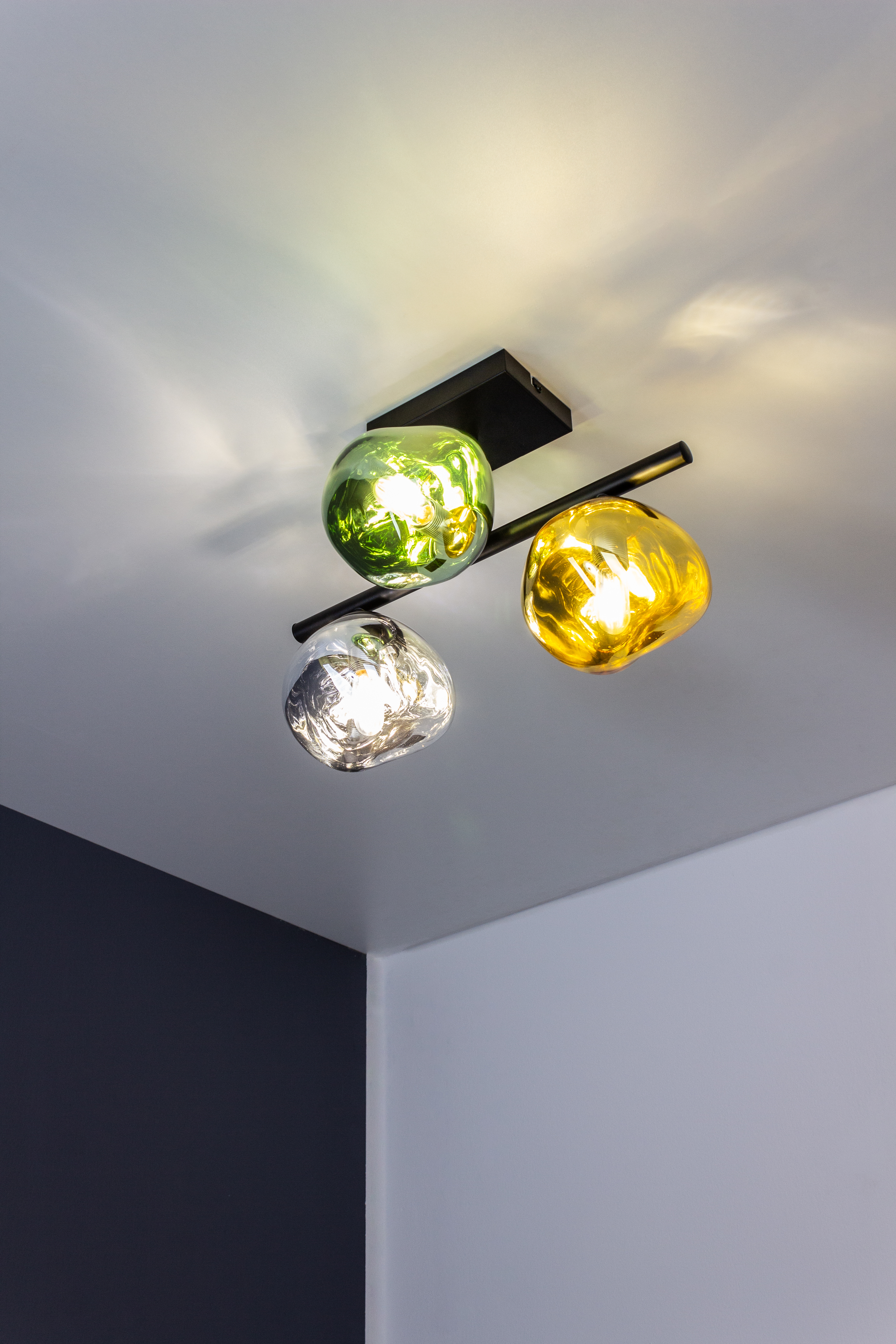 Erleben Sie die einzigartige Eleganz der Canopus Deckenleuchte, die in den Farben Gelb, Grün, Schwarz und Weiß erhältlich ist. Mit ihrem stilvollen Design aus hochwertigem Glas und robustem Metall fügt sie sich nahtlos in jede moderne Wohnumgebung ein. Die Leuchte ist 30,5 cm hoch und 25,5 cm breit, mit einem Durchmesser von 15,0 cm, was sie zu einem beeindruckenden Blickfang macht, ohne den Raum zu dominieren.