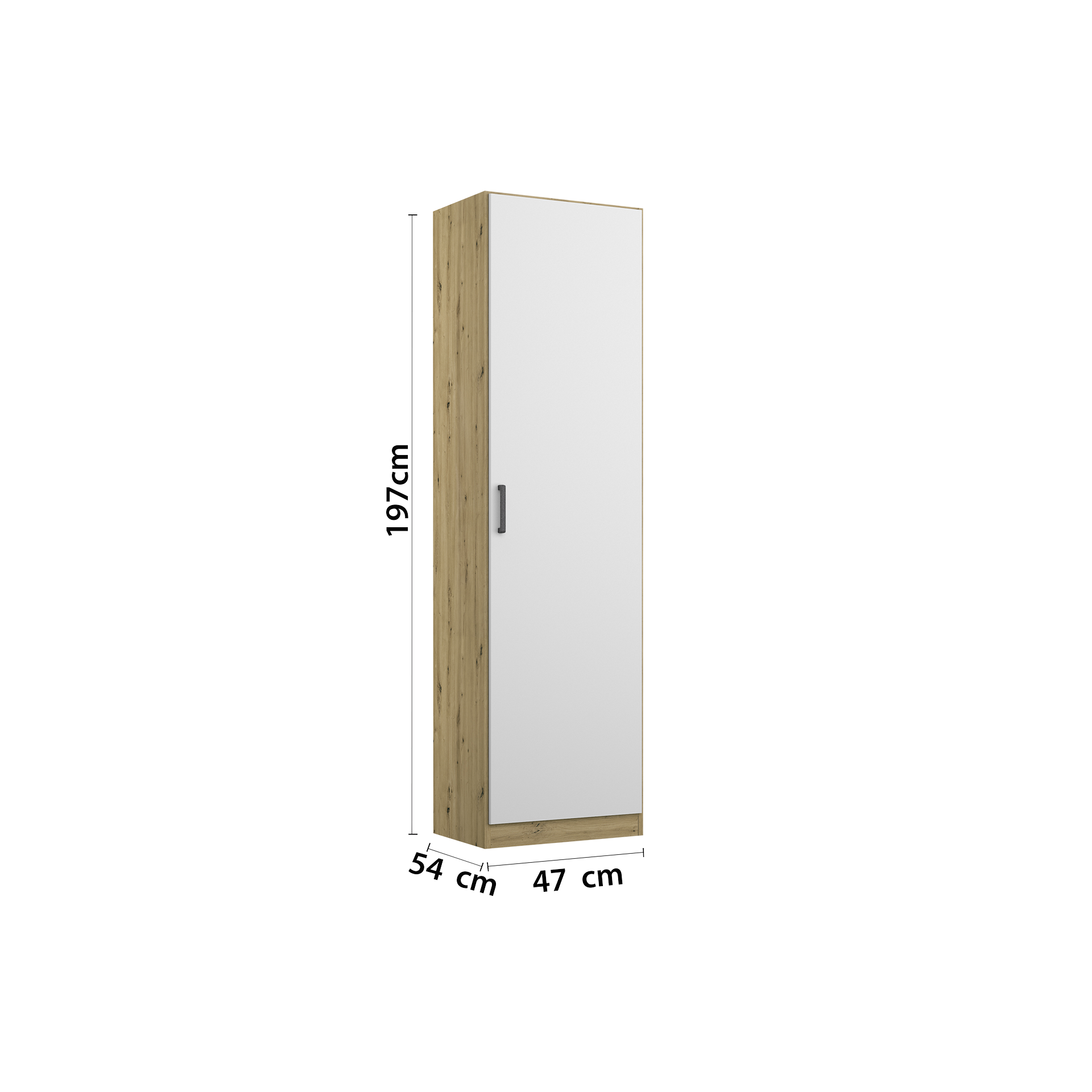 Die Front in Alpinweiß verleiht dem Schrank eine moderne Note, während der Korpus in Eiche Dekor für natürliche Akzente sorgt. Dieser Drehtürenschrank kombiniert stilvolles Design mit praktischer Funktionalität und bietet ausreichend Stauraum für Ihre Kleidung und Accessoires.