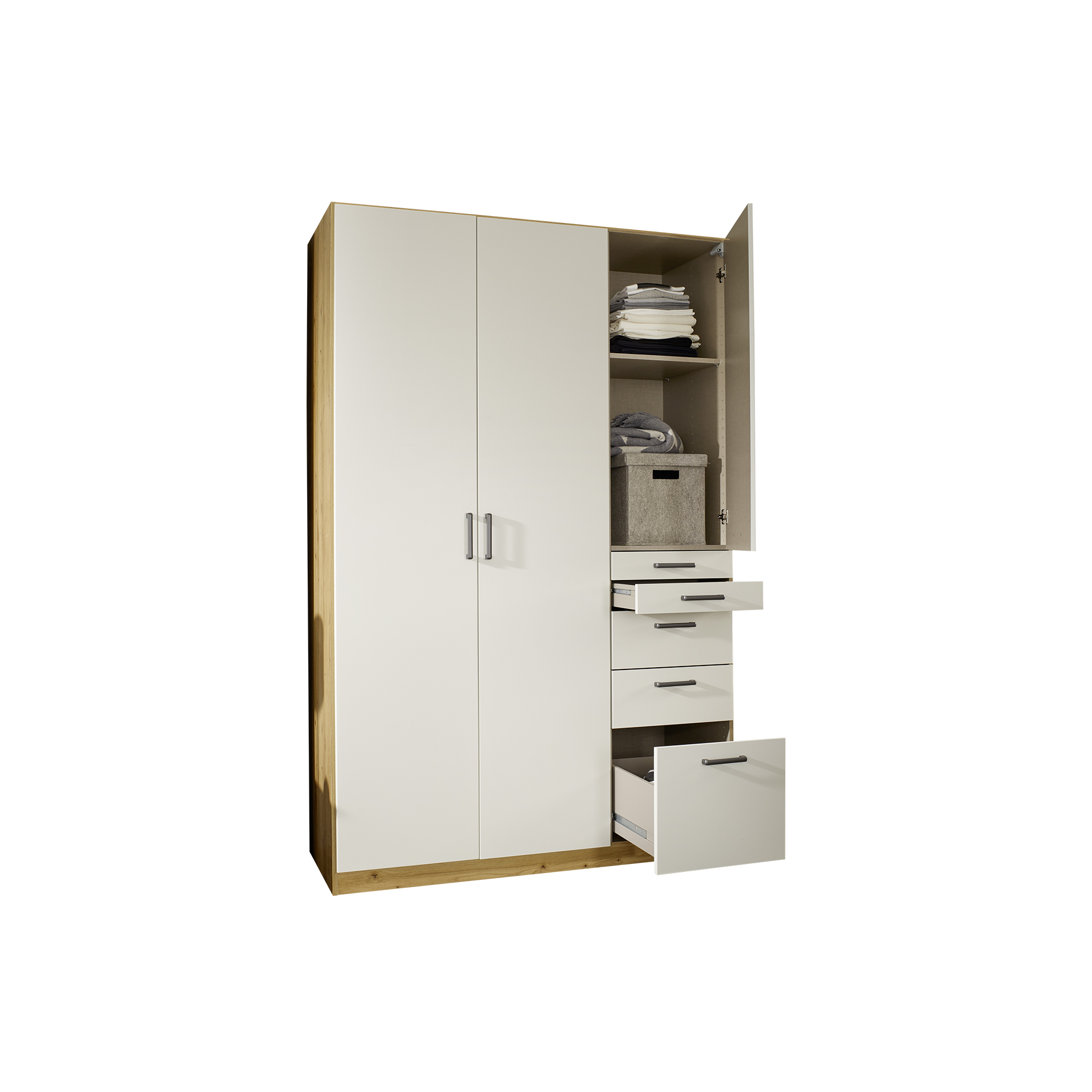 Multiform bietet ausreichend Stauraum und ist ideal für eine ordentliche und übersichtliche Aufbewahrung Ihrer Kleidung. Die Drehtüren ermöglichen einen bequemen Zugang und machen den Schrank zu einem praktischen Möbelstück für Ihr Schlafzimmer. Profitieren Sie von der Kombination aus ästhetischem Design und praktischer Funktionalität.
