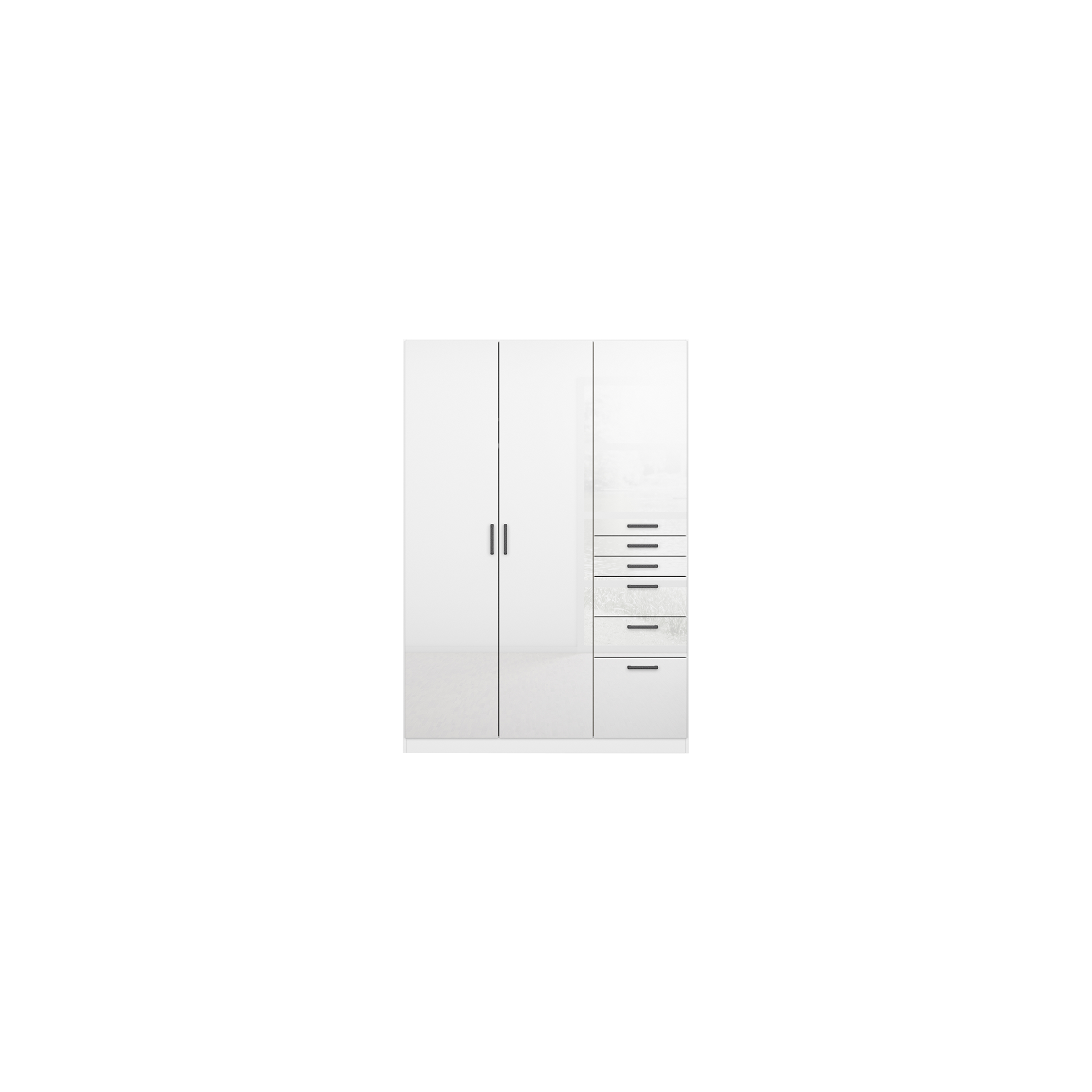 Die Fronten des Schranks sind in Hochglanz Weiß gehalten, was für eine elegante und strahlende Optik sorgt. Der Korpus in Alpinweiß ergänzt dieses Design harmonisch und verleiht Ihrem Raum eine helle und freundliche Atmosphäre. Die hochglänzende Oberfläche verstärkt den Eindruck von Sauberkeit und Modernität, während die Drehtüren eine einfache und bequeme Handhabung ermöglichen.