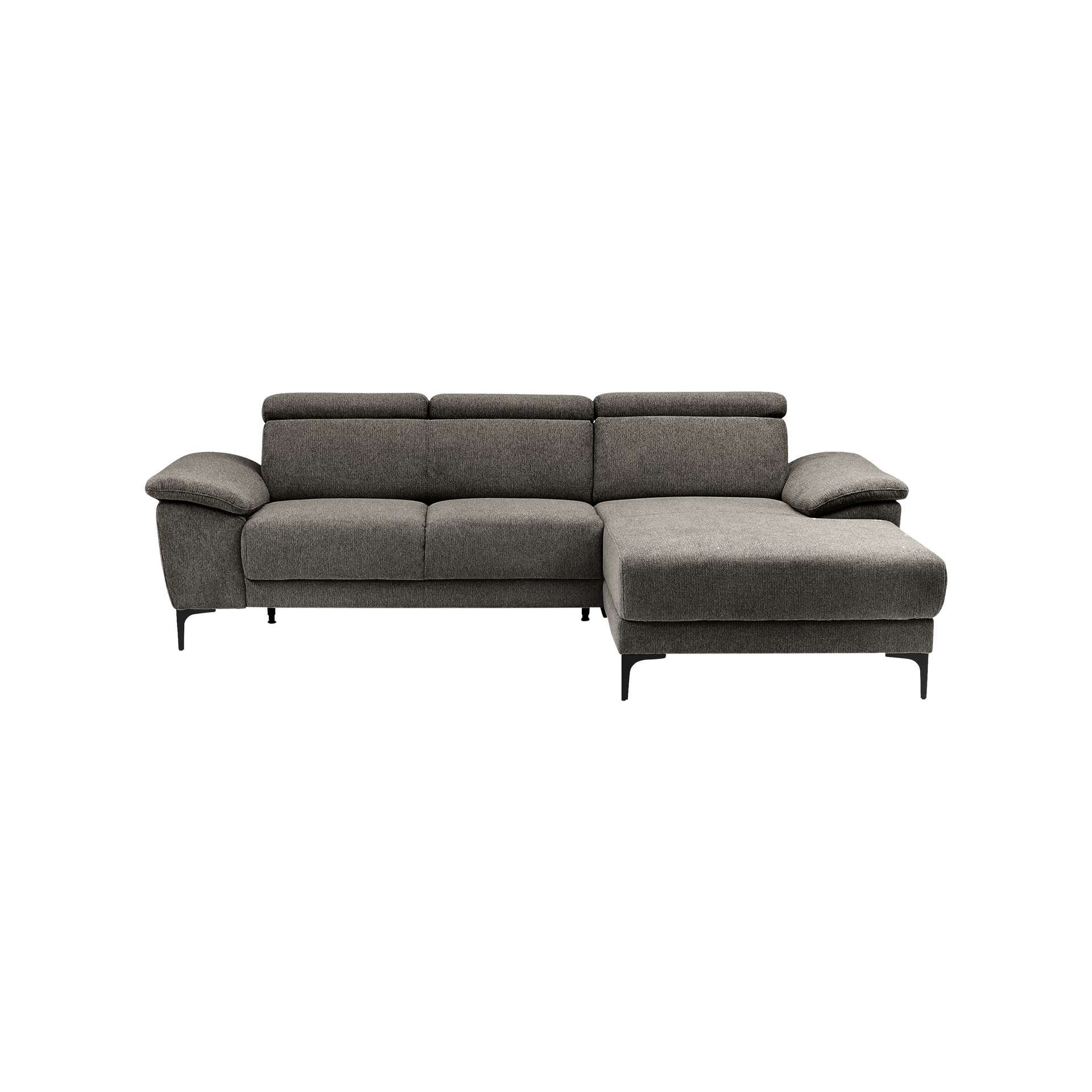 Ein besonderes Komfortmerkmal des Ezra Ecksofas ist die verstellbare Kopfstütze, die Ihnen ermöglicht, die ideale Position für entspanntes Sitzen oder Liegen zu finden. Die Sitzhöhe von 49 cm ist optimal für ein bequemes Ein- und Aussteigen. Das stabile Gestell aus Holzwerkstoff garantiert Langlebigkeit und Robustheit.