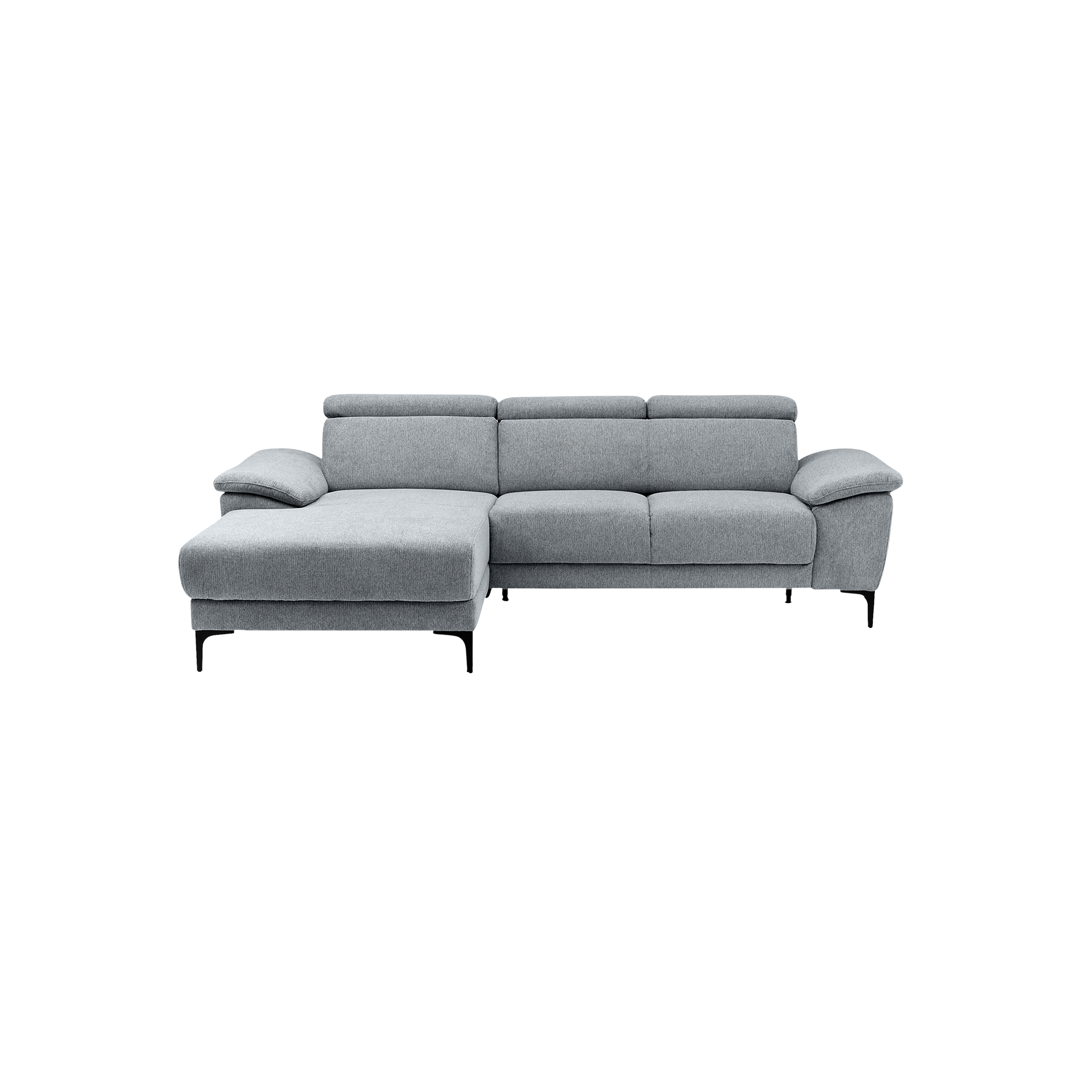 Entdecken Sie das Modell Ezra: ein elegantes Ecksofa, das modernen Komfort mit stilvollem Design vereint. Der Bezug in klassischem Grau harmoniert perfekt mit den schwarzen Metallfüßen und verleiht jedem Wohnraum eine zeitlose Note. Die großzügige Sitzbreite von 120 cm und die angenehme Sitzhöhe von 49 cm sorgen für ein bequemes Sitzerlebnis.