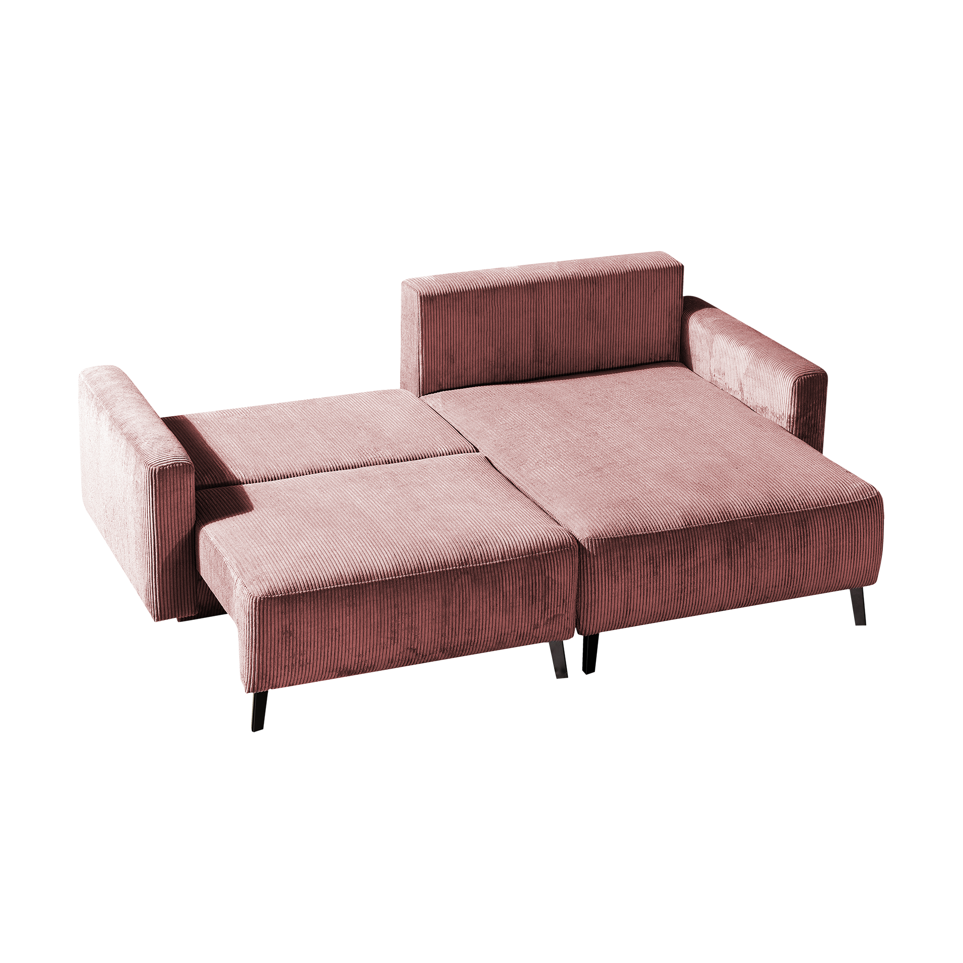 Erleben Sie höchsten Komfort und stilvolles Design mit dem Ecksofa "Hakoon". Dieses Sofa besticht durch seinen eleganten Cord-Bezug in Rosa und einem unifarbenen Muster, das jedem Raum eine harmonische Atmosphäre verleiht. Die schwarzen Metallfüße bieten stabilen Halt und ergänzen den modernen Look perfekt.