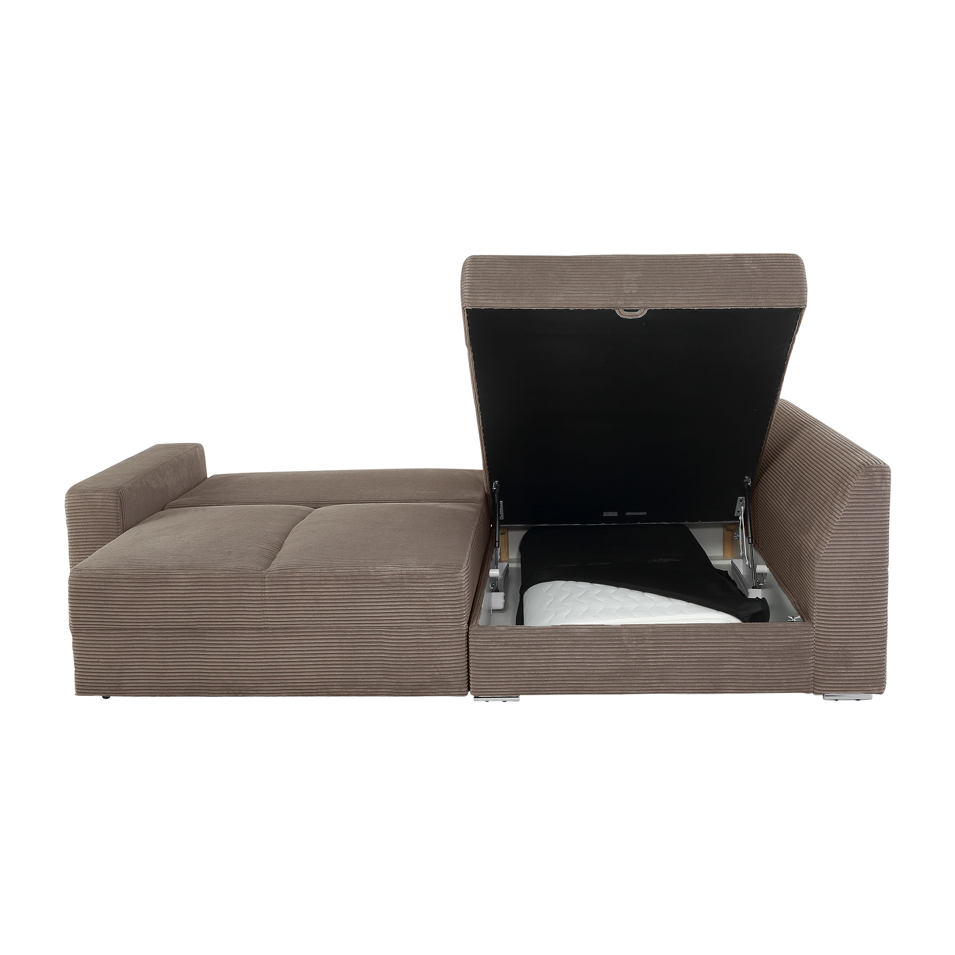Erleben Sie Komfort und Funktionalität mit dem Ecksofa Modell Janis. Der braune Bezug aus hochwertigem Polyester verleiht Ihrem Wohnzimmer eine elegante Note, während die silberfarbenen Chromfüße für einen modernen Akzent sorgen. Die Cord-Gewebeart bietet eine weiche und angenehme Haptik.
