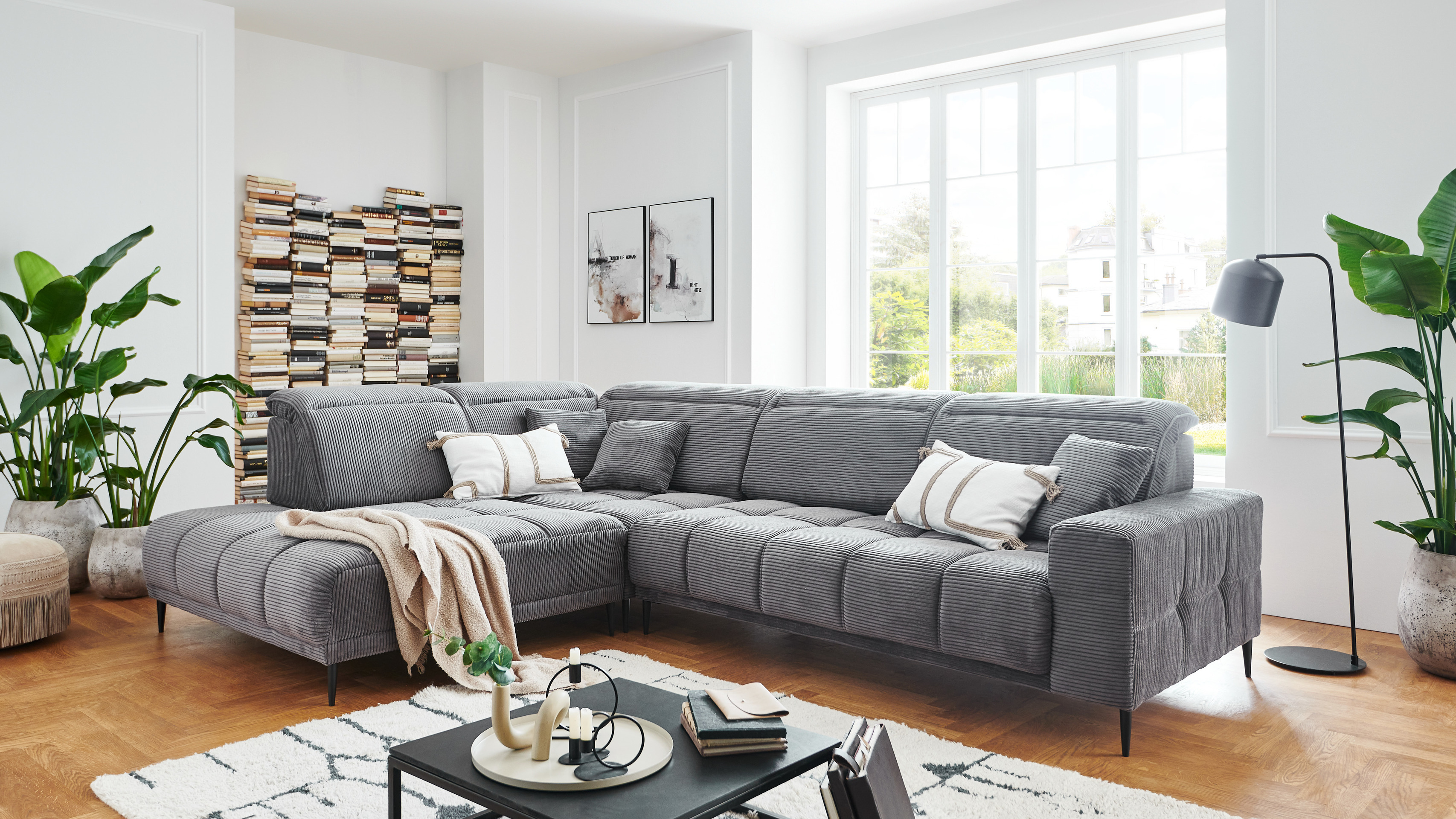 Ecksofa Liana Grau Sitztiefe motorisch verstellbar Ottomane links 1.998,00 €
