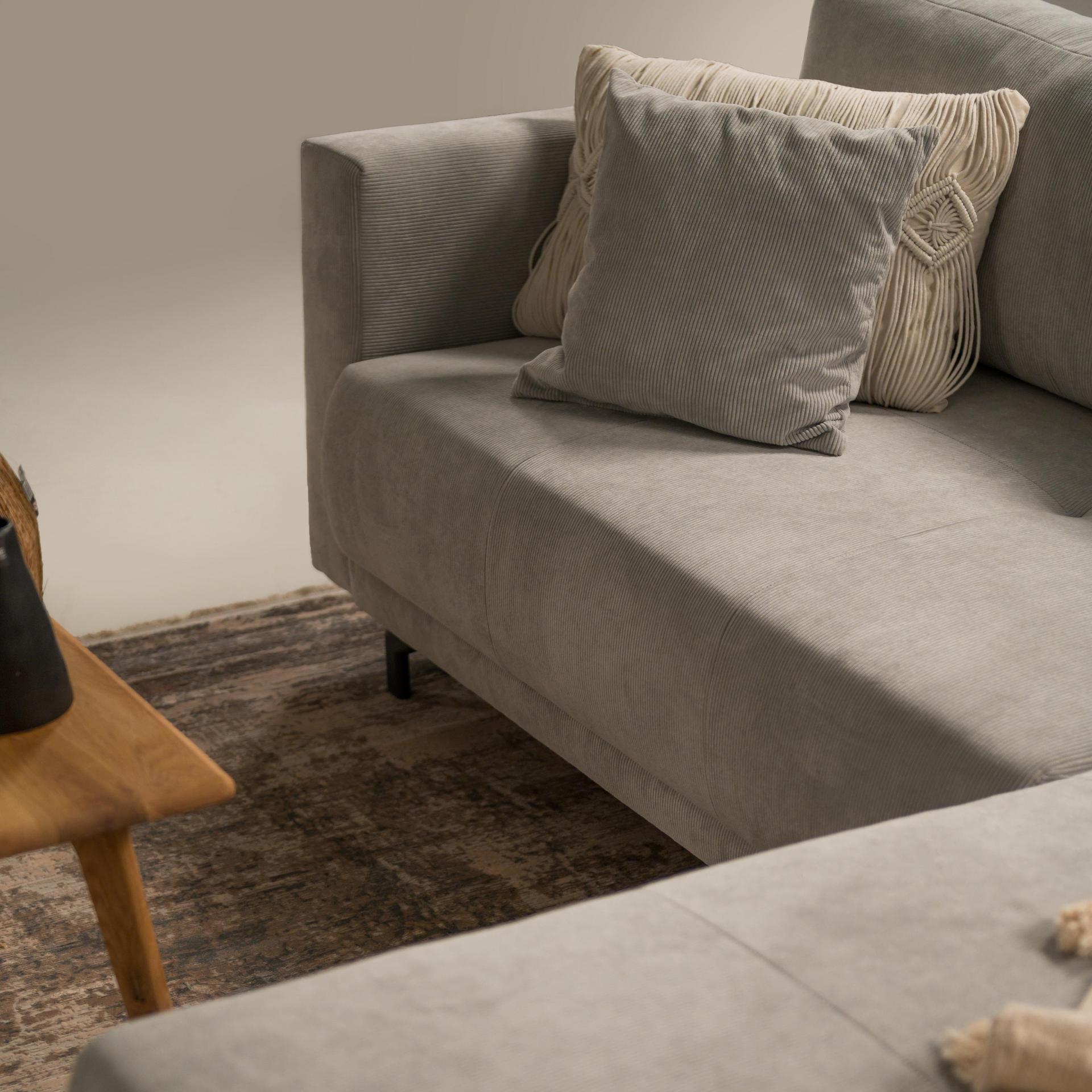 Das Sofa besticht durch seinen grauen Bezug aus Polyester, der sich harmonisch in verschiedene Einrichtungsstile einfügt. Die Füße sind aus robustem Metall gefertigt und in elegantem Schwarz gehalten, was dem Sofa eine moderne Note verleiht. Genießen Sie mit dem Ecksofa Loana ein Möbelstück, das Komfort und Stil perfekt kombiniert.