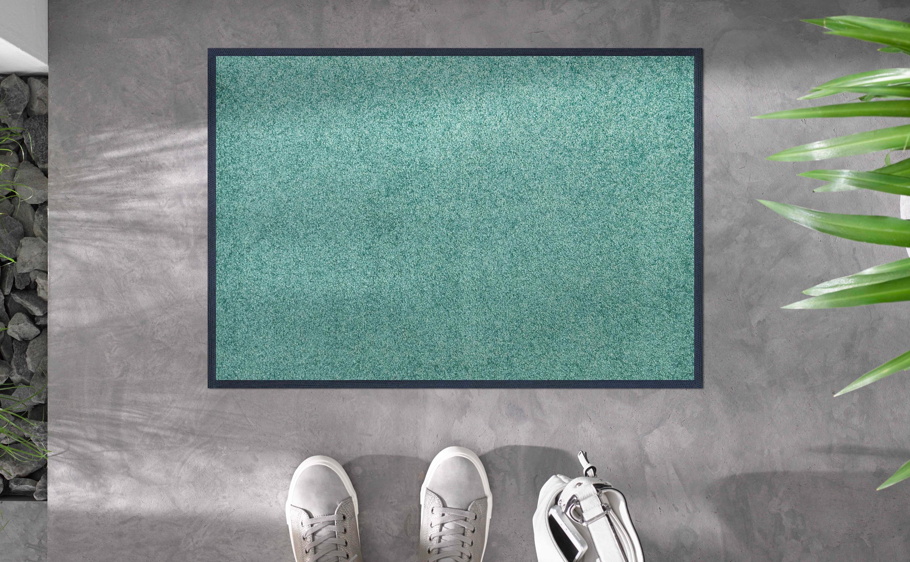 Entdecken Sie die Trend Colour Fußmatte, eine ideale Lösung für stilbewusste Haushalte. Diese rechteckige Matte in elegantem Grün überzeugt durch ihr schlichtes, uni Muster und passt sich jedem Einrichtungsstil an. Mit einer großzügigen Breite von 40,0 cm und einer Höhe von 0,8 cm bietet sie optimalen Schutz für Ihren Eingangsbereich.