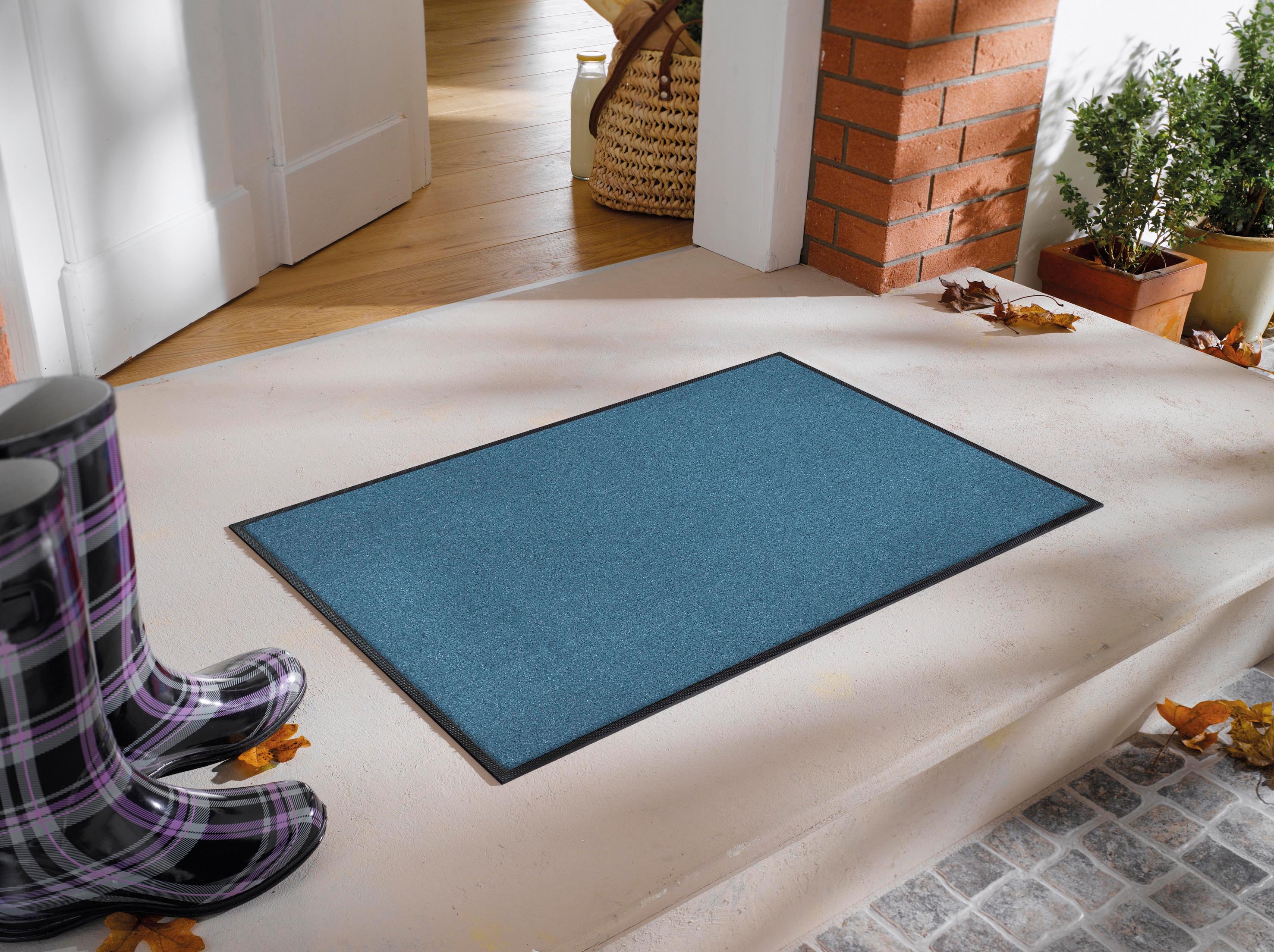 Entdecken Sie die hochwertige Fußmatte "Trend Colour" in einem eleganten Blau. Diese rechteckige Matte mit den Maßen 60 x 0,8 cm ist die perfekte Ergänzung für jeden Eingangsbereich. Hergestellt aus strapazierfähigem Polyamid, bietet sie nicht nur ein ansprechendes, uni-farbenes Design, sondern auch zahlreiche funktionale Vorteile.